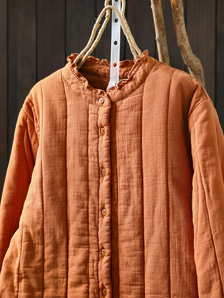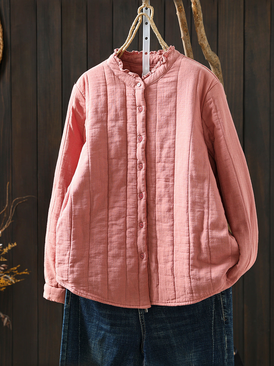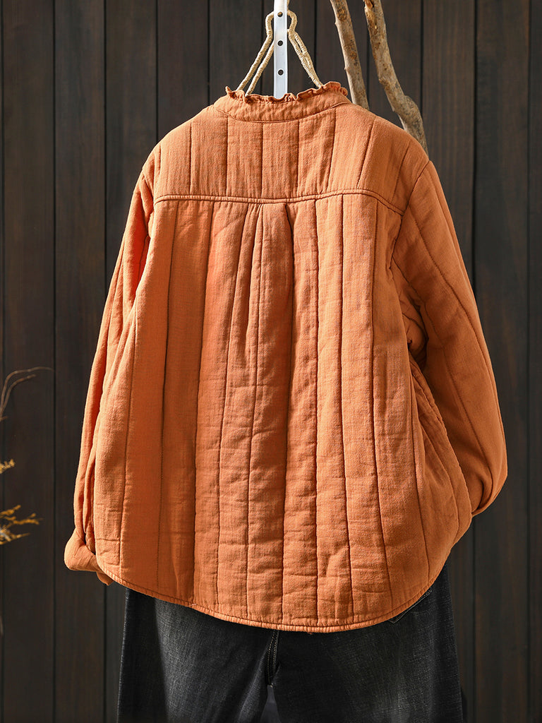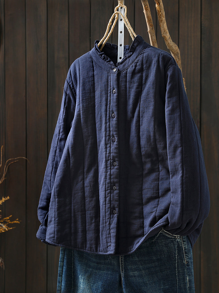 Casaco acolchoado feminino de inverno em cor lisa com gola alta