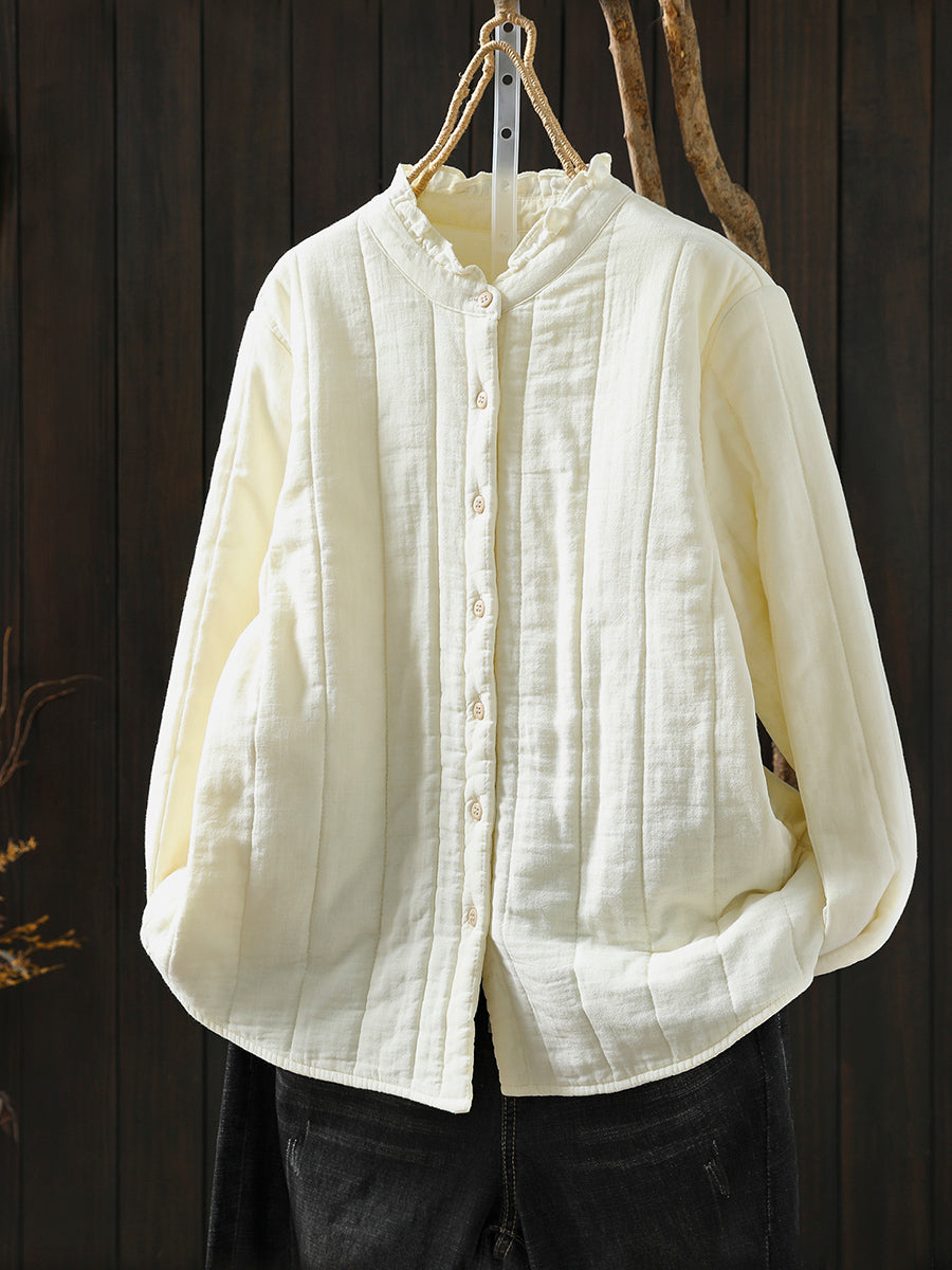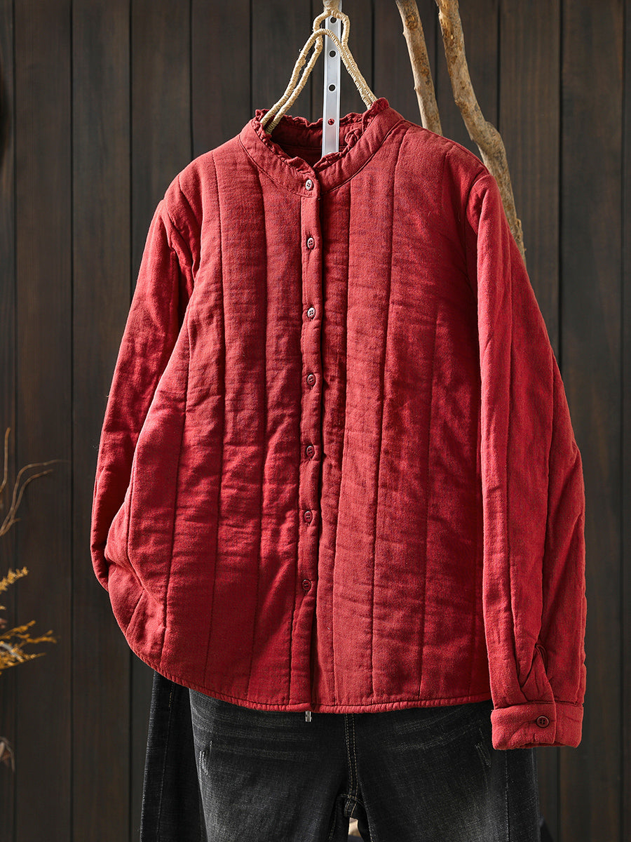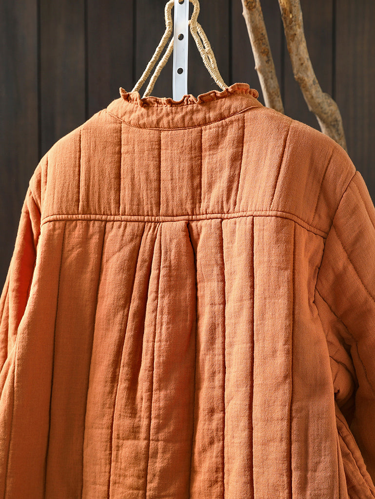 Casaco acolchoado feminino de inverno em cor lisa com gola alta