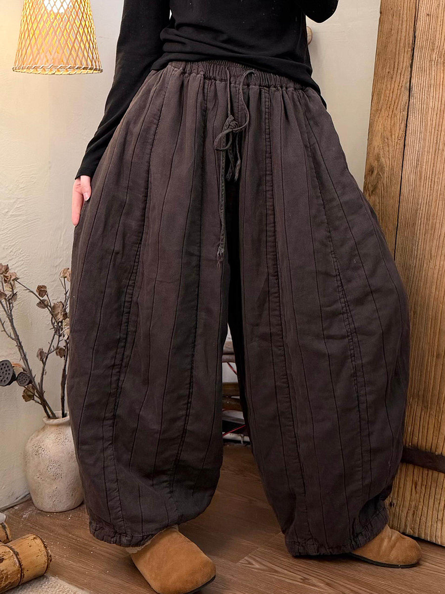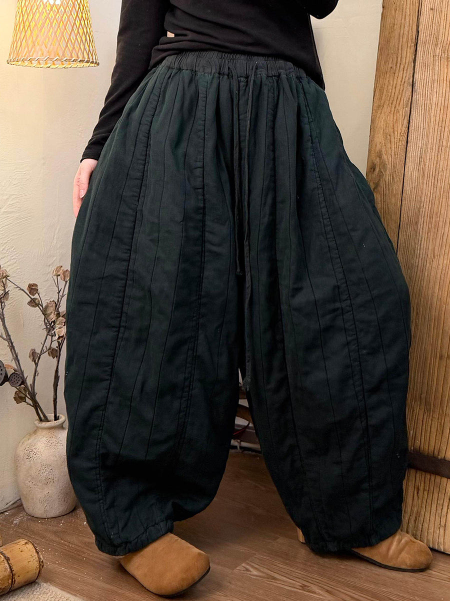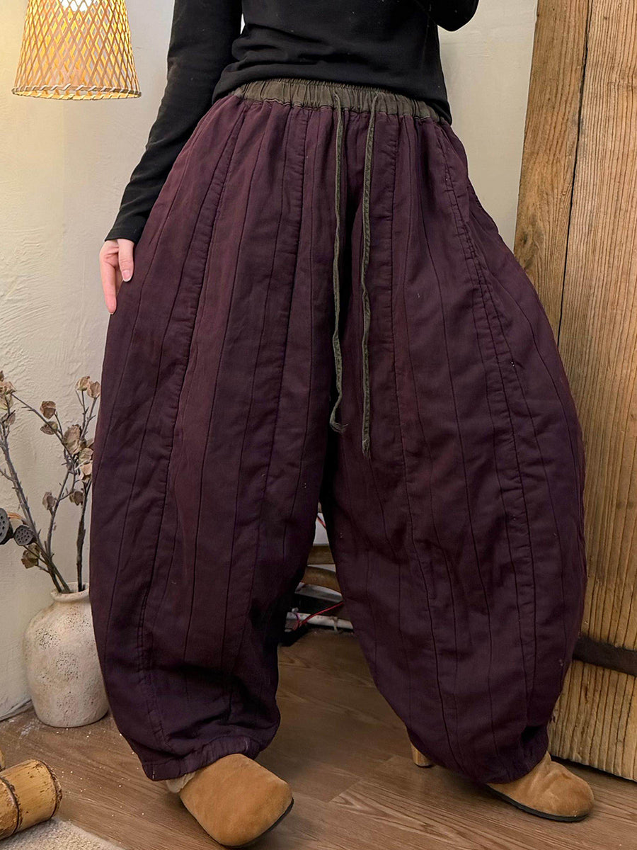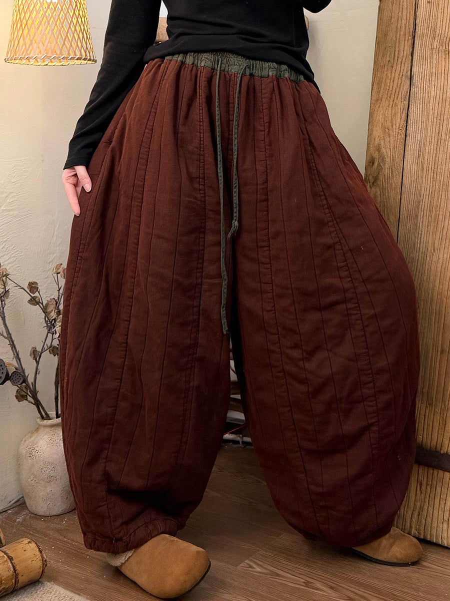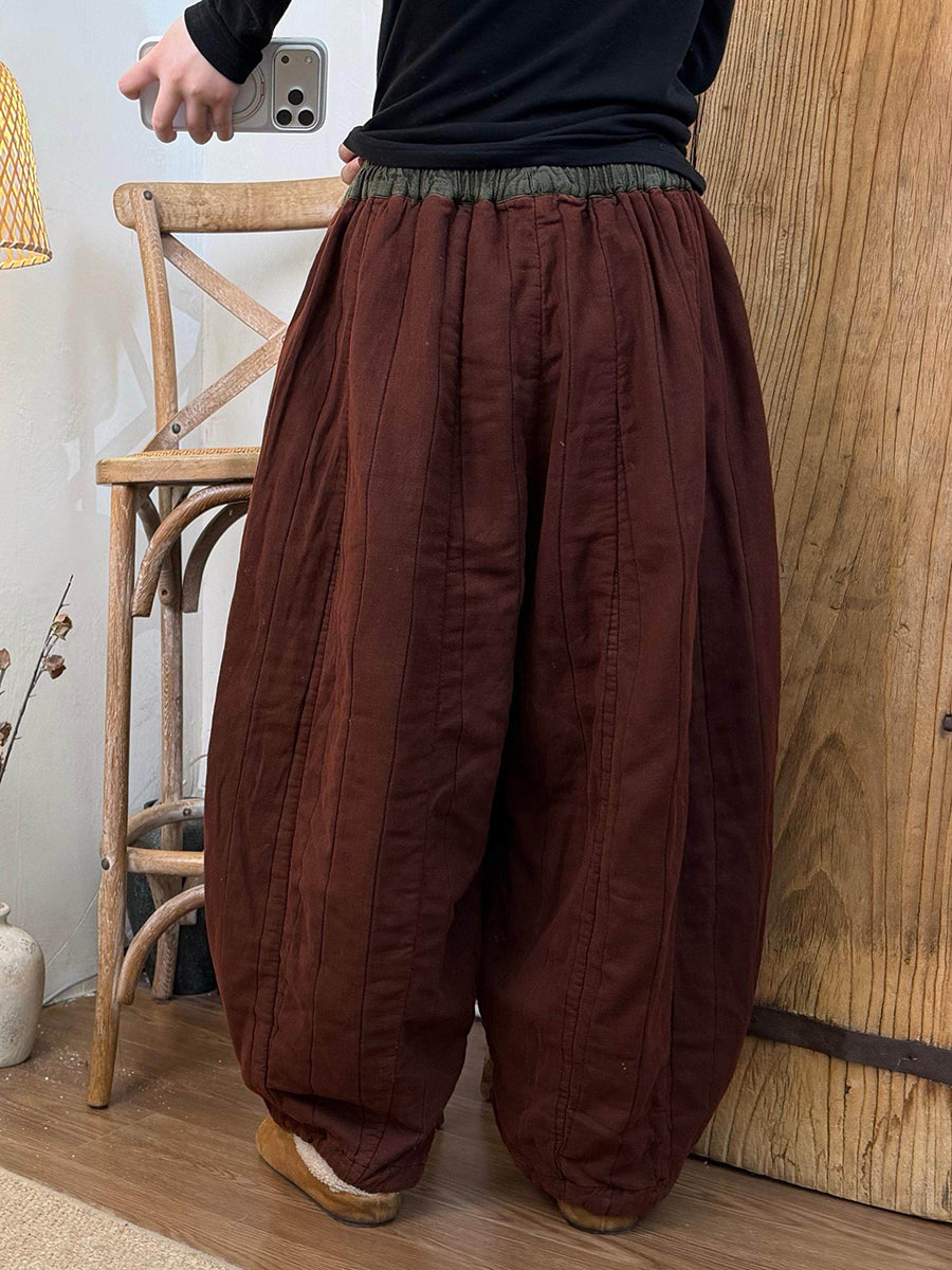 Calça Harem Acolchoada Feminina de Inverno com Blocos de Cores Retrô