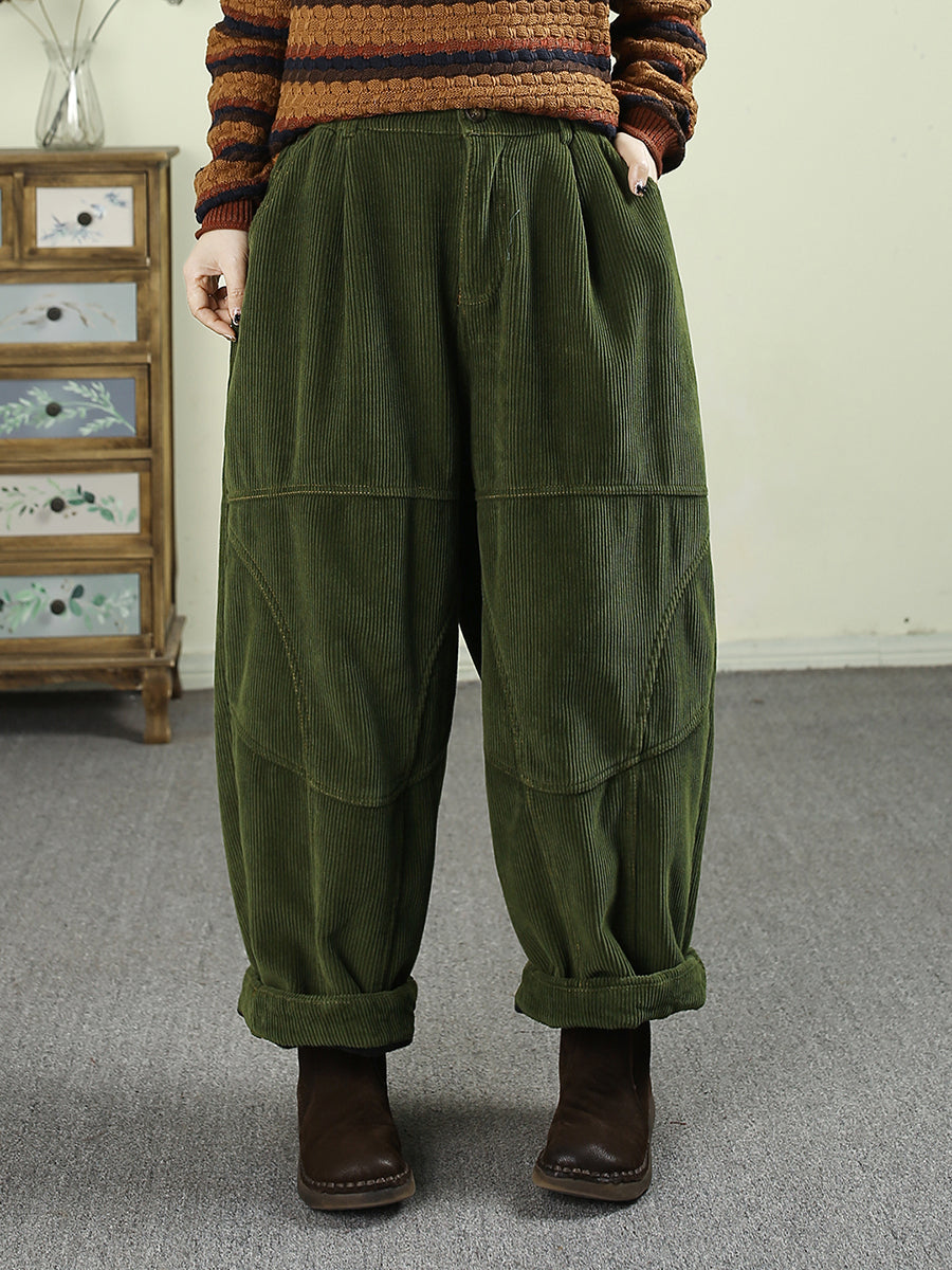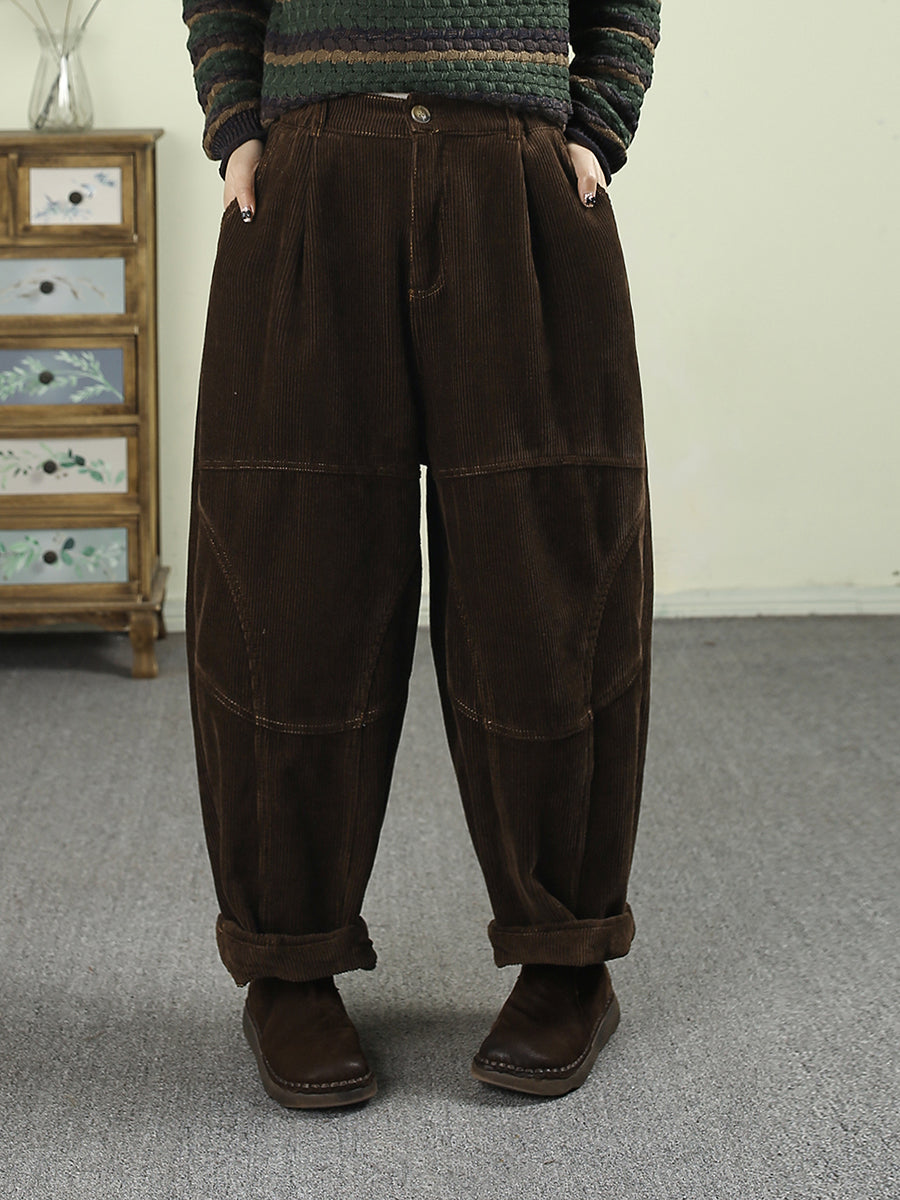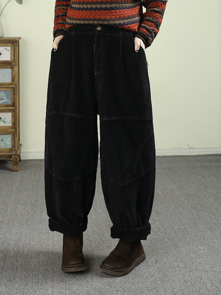 Calça Harem Feminina de Inverno Estilo Retrô, Cor Lisa, Forrada com Lã