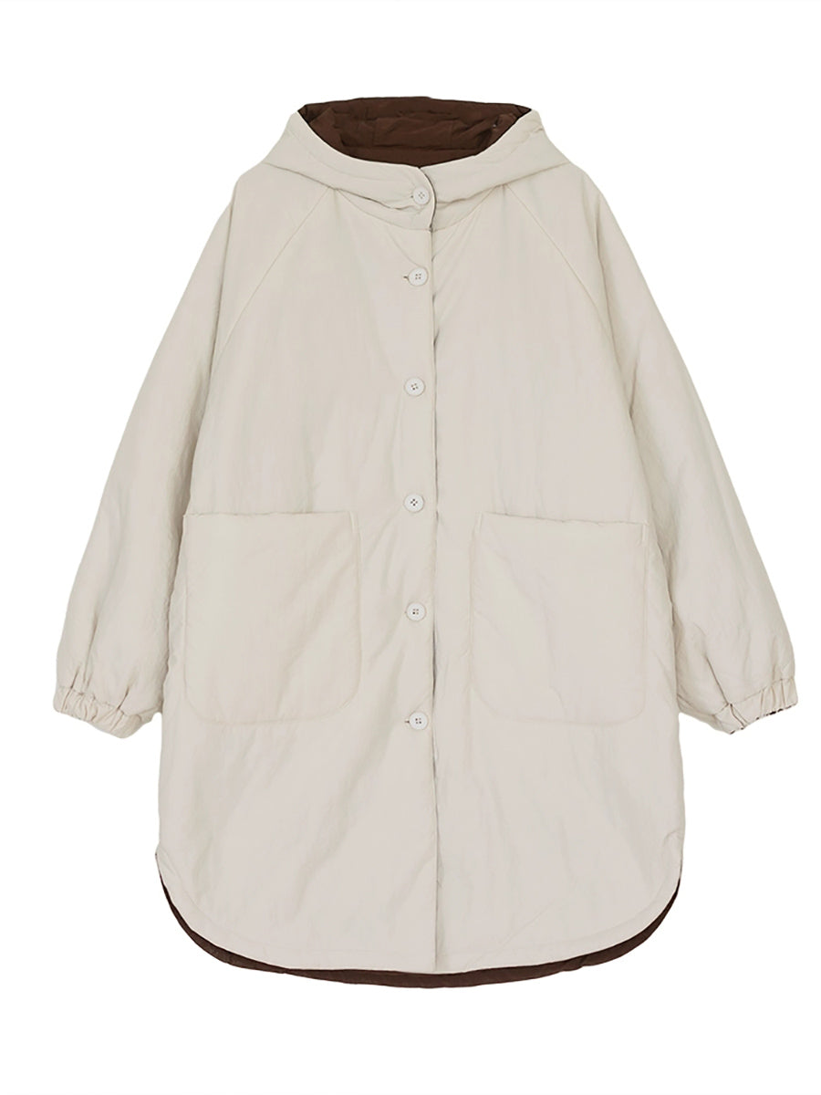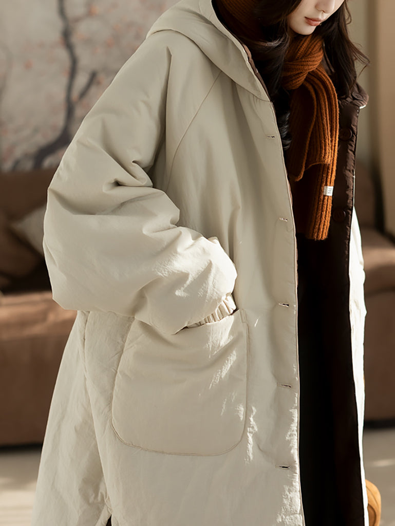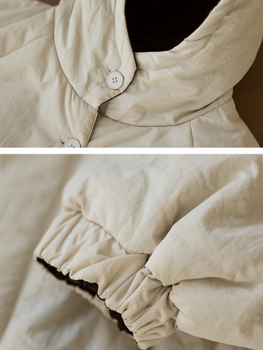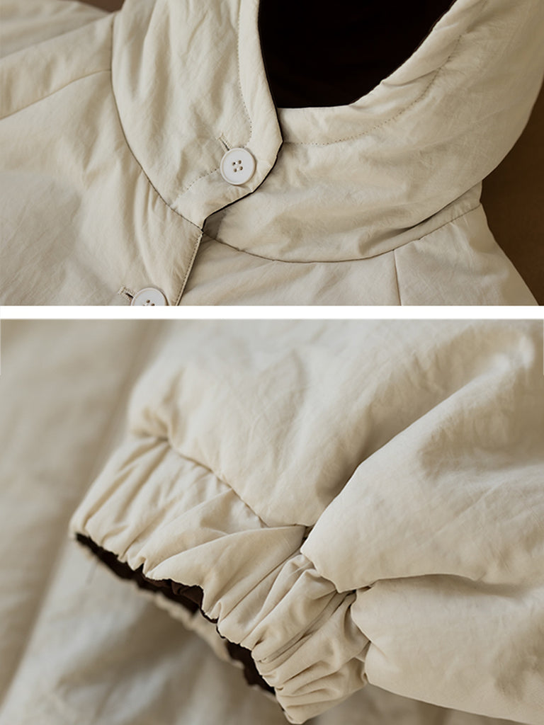 Casaco acolchoado com capuz feminino retrô de cor lisa para o inverno