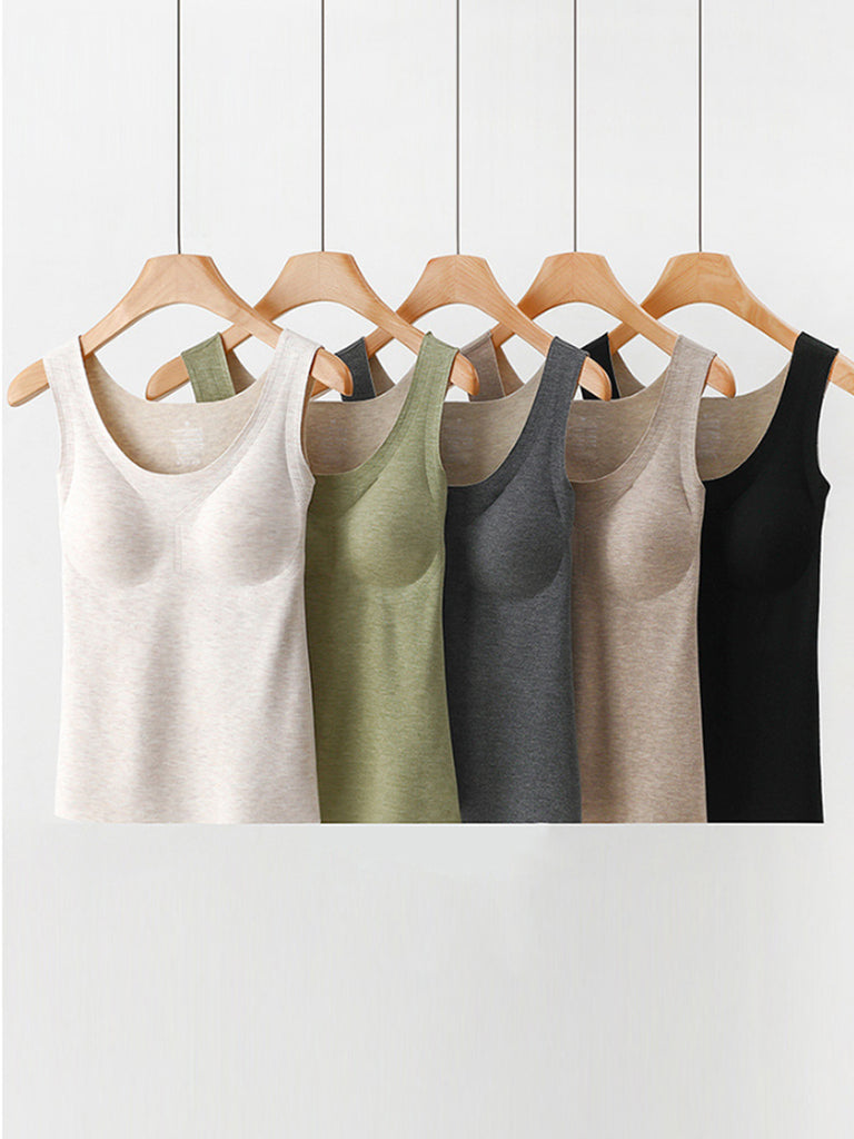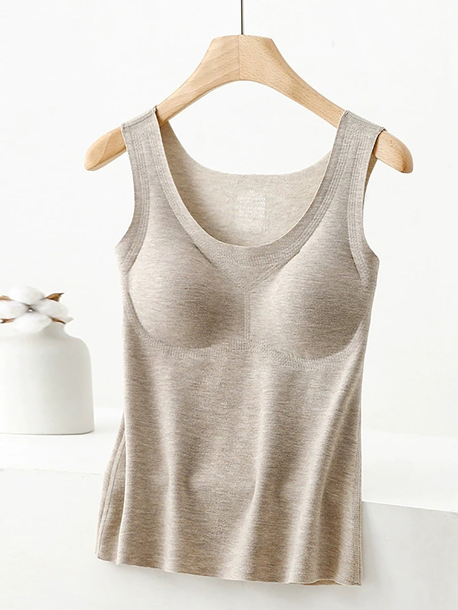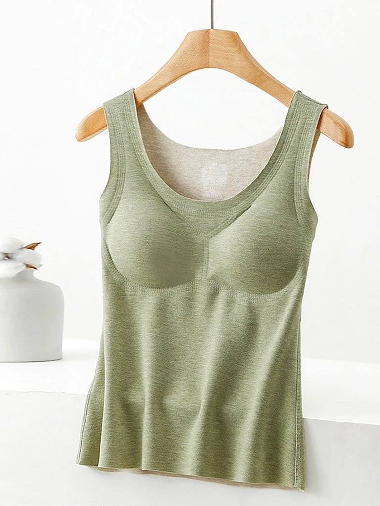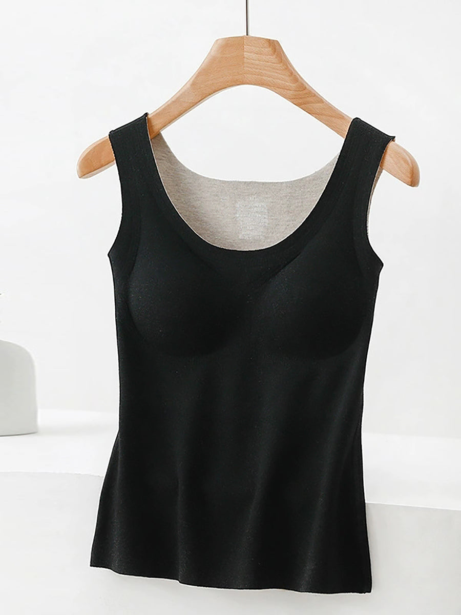 Colete feminino de inverno, quente, em cor lisa, com base acolchoada.