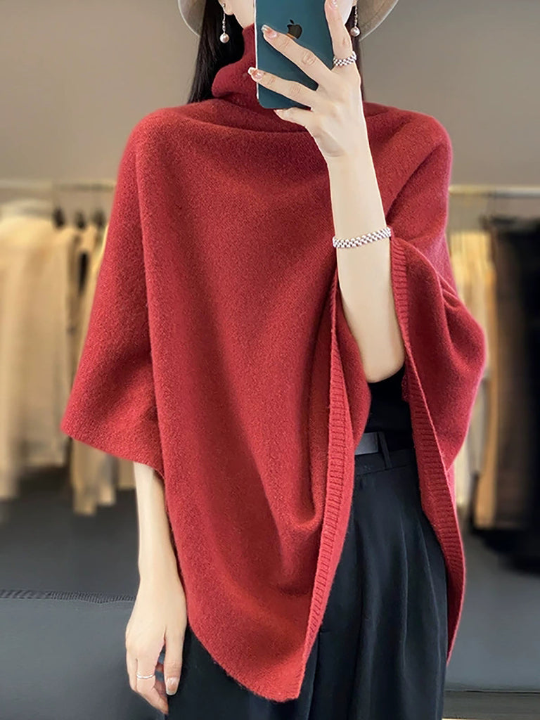 Pulôver de gola alta com cor pura Artsy para mulheres