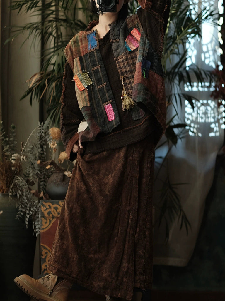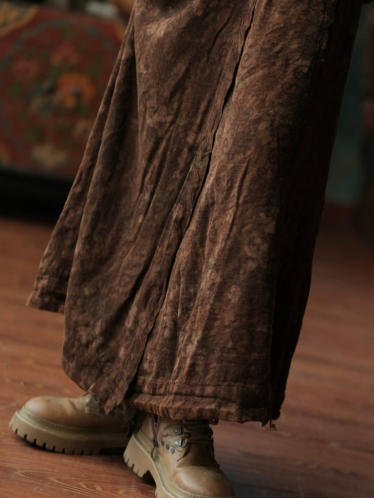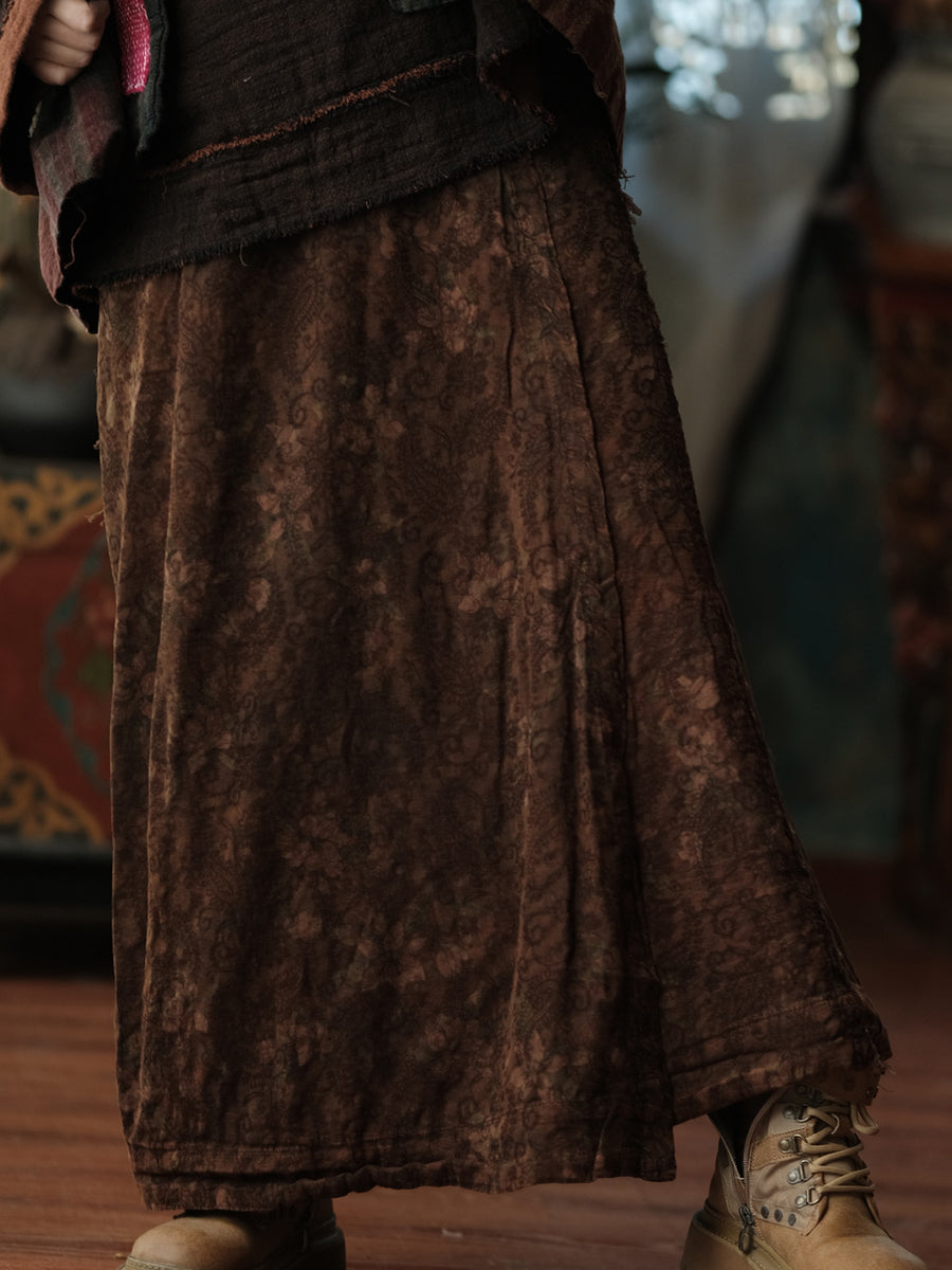 Saia reta feminina de algodão com estampa floral retrô para o outono