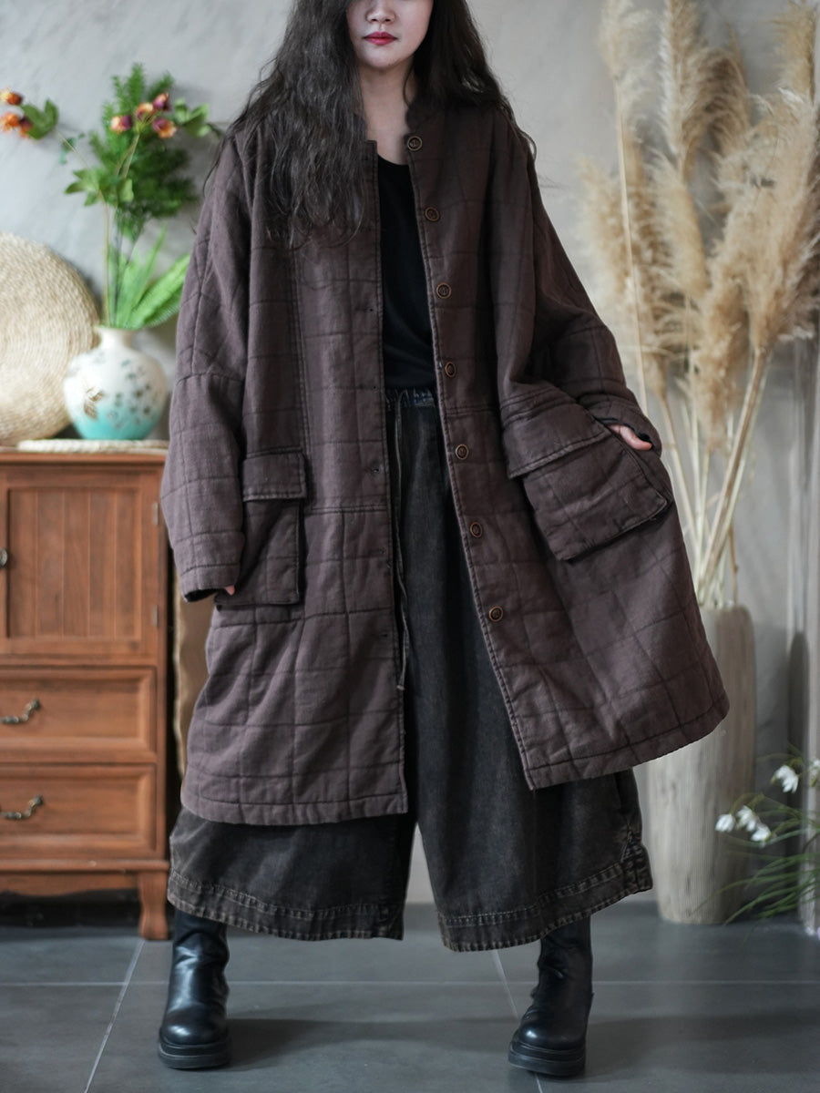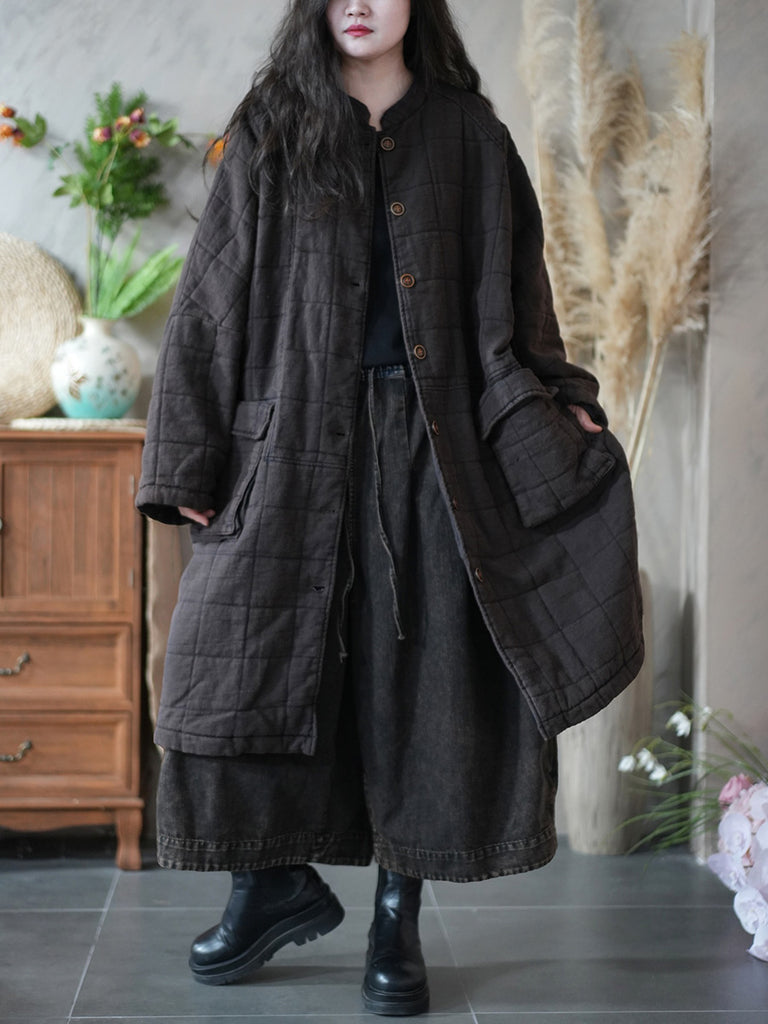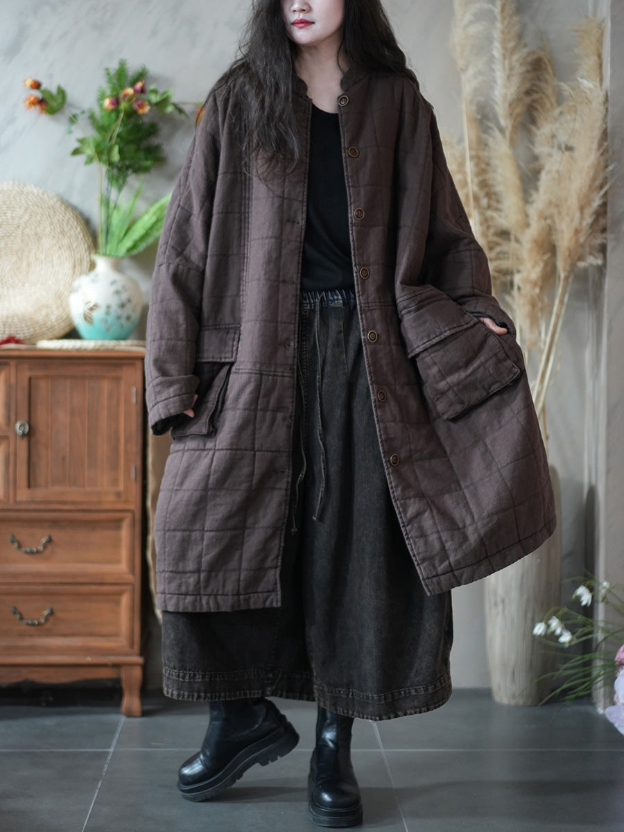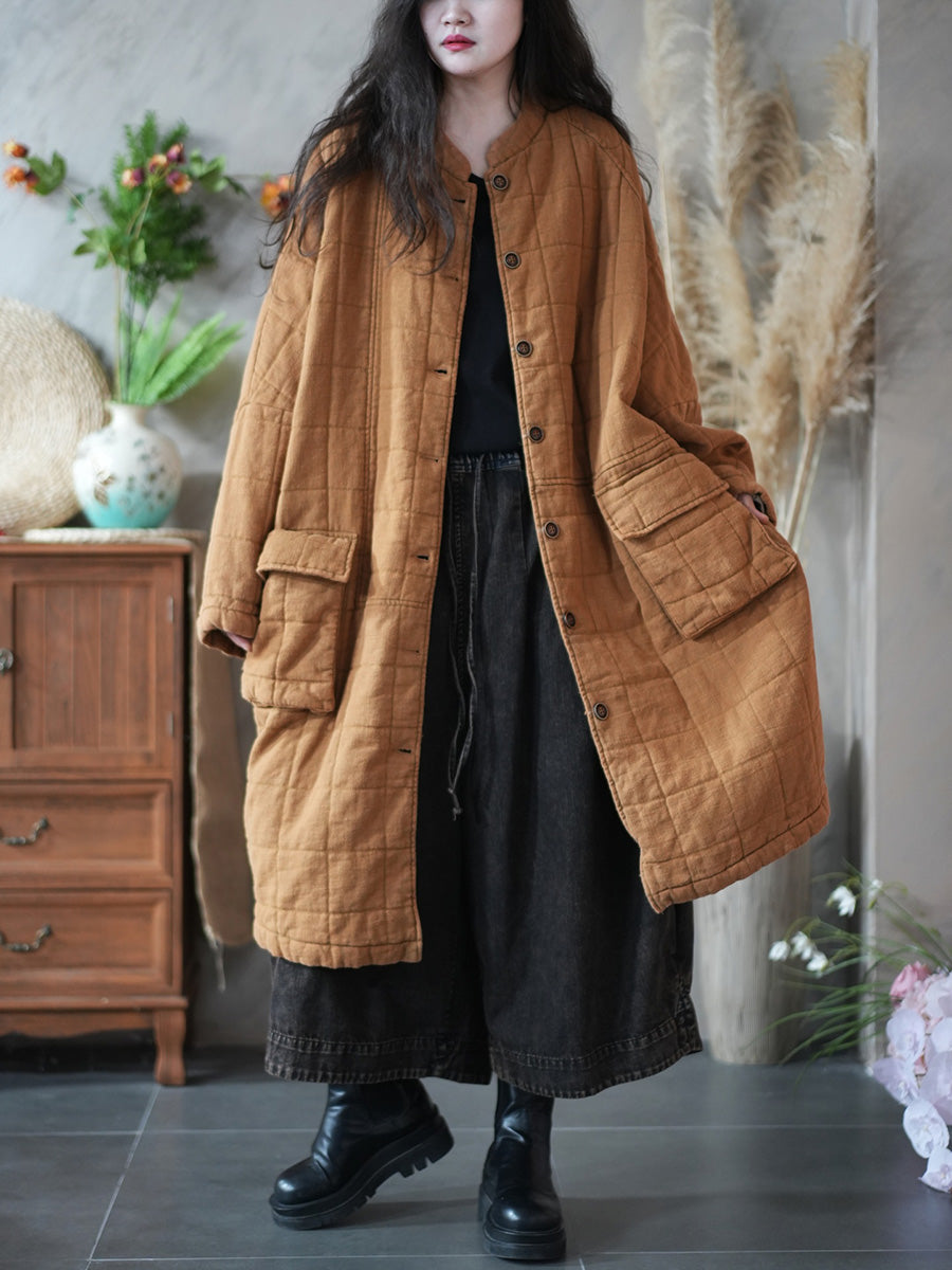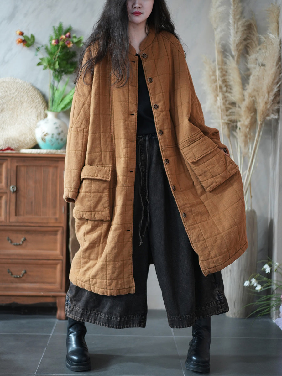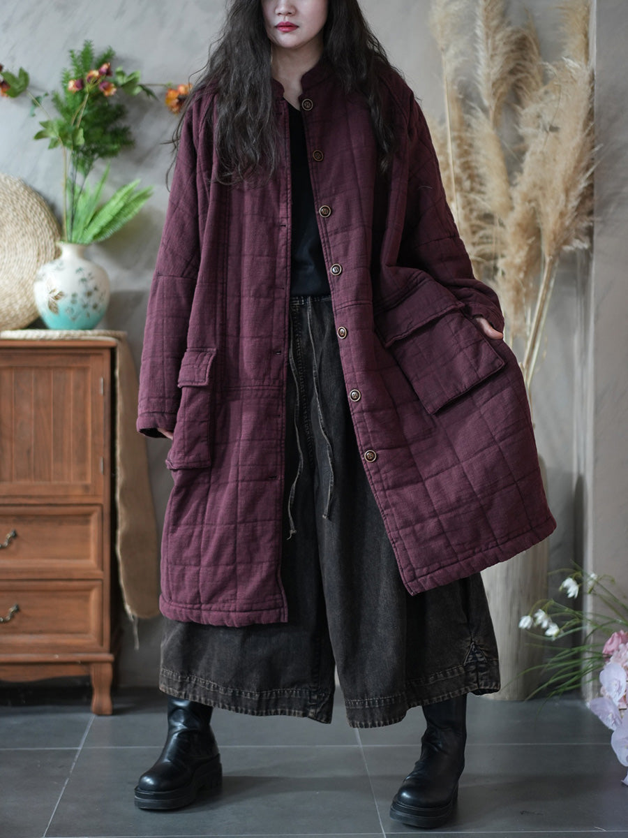 Casaco acolchoado feminino retrô de inverno em cor lisa com gola alta