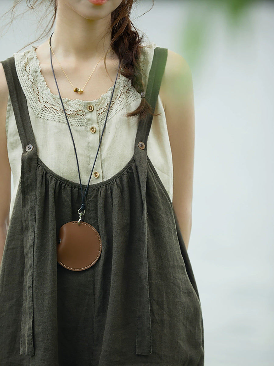 Macacões femininos retrô de verão, cor pura, 100% linho