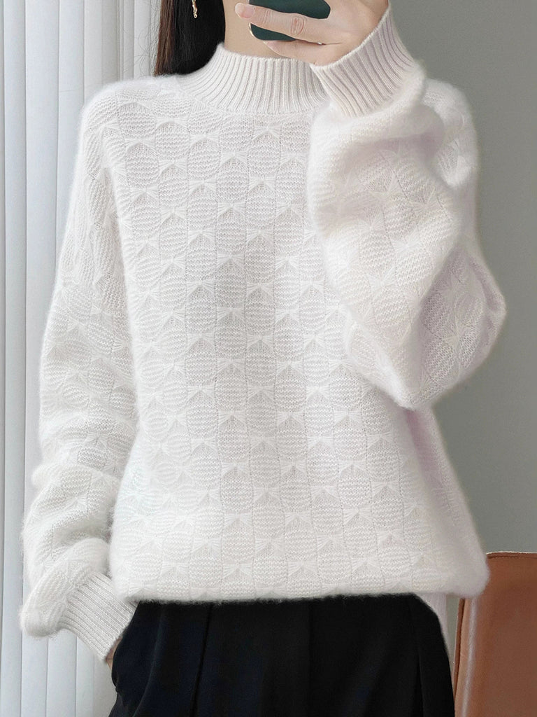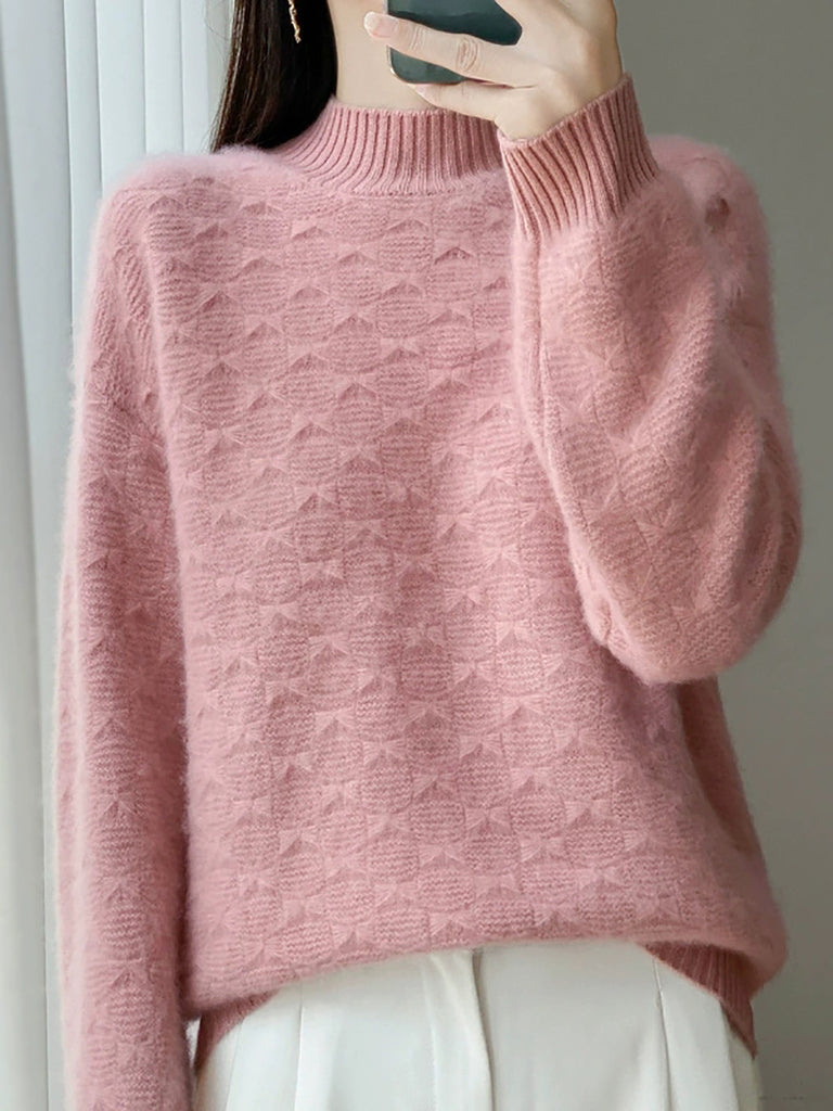 Suéter feminino vintage de gola alta com laço, estilo outono.