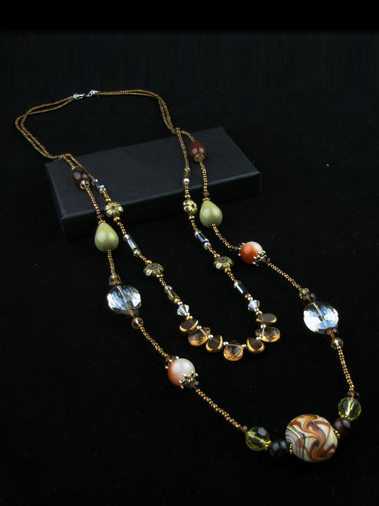Colar feminino vintage com contas de cristal e acrílico Pandent