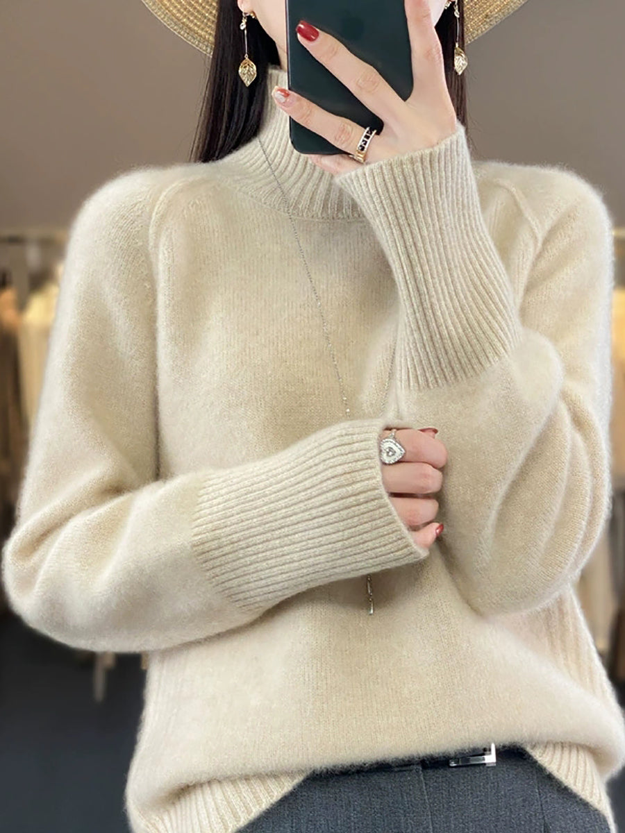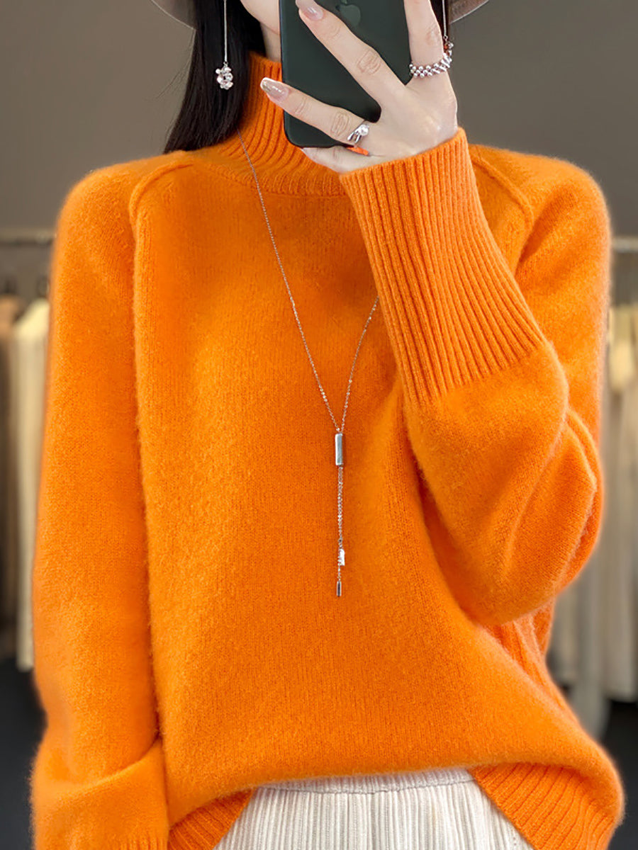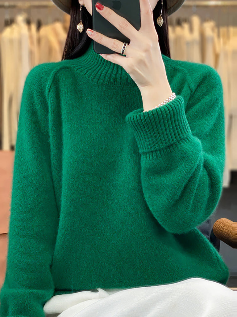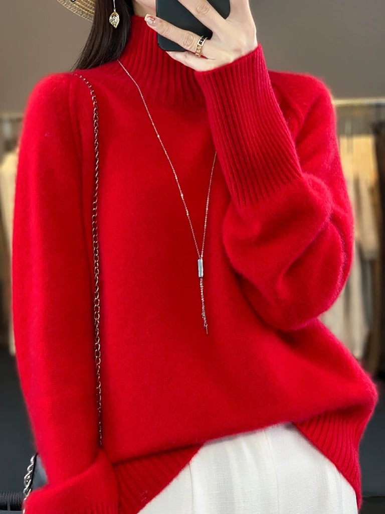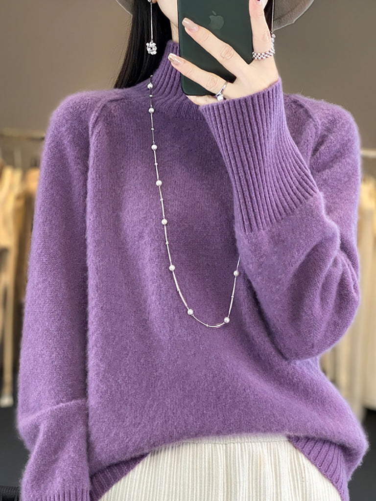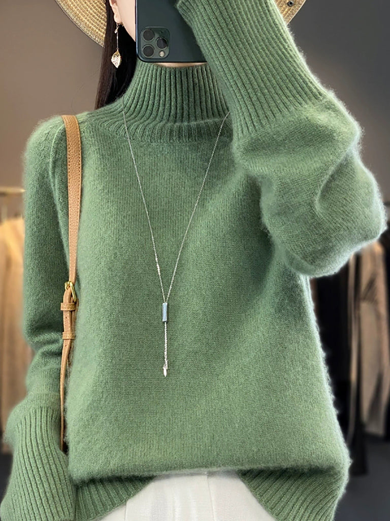 Suéter feminino de gola alta em tricô, casual, de cor lisa, para o inverno.