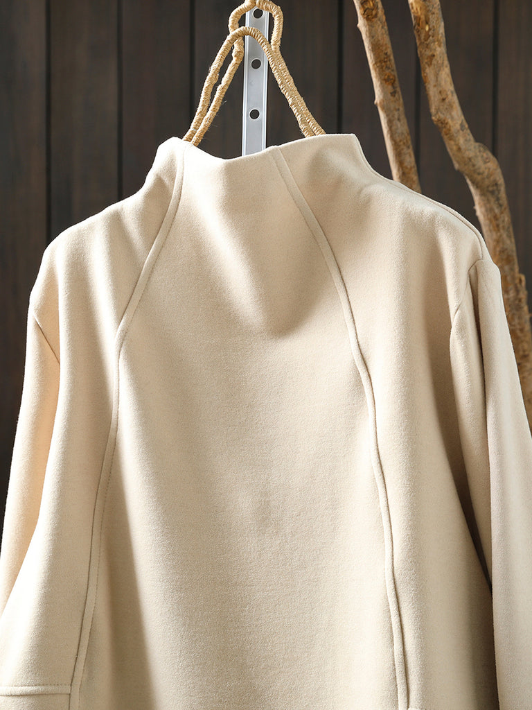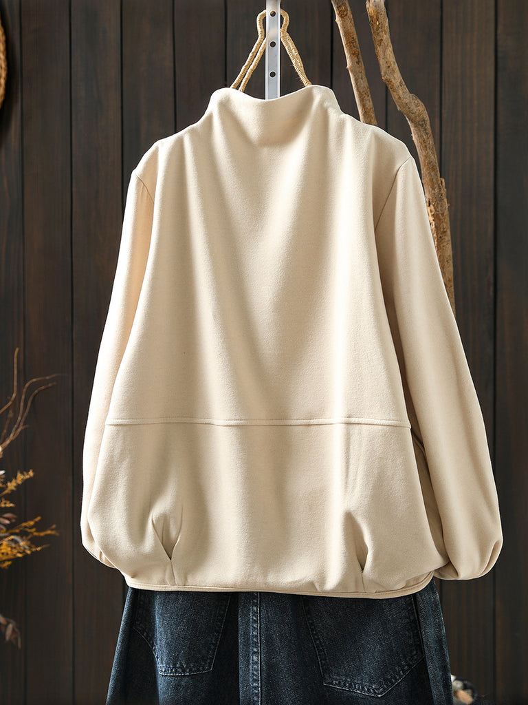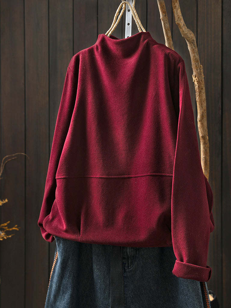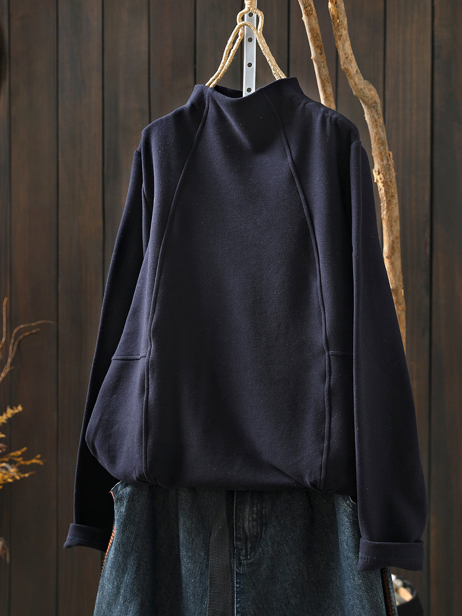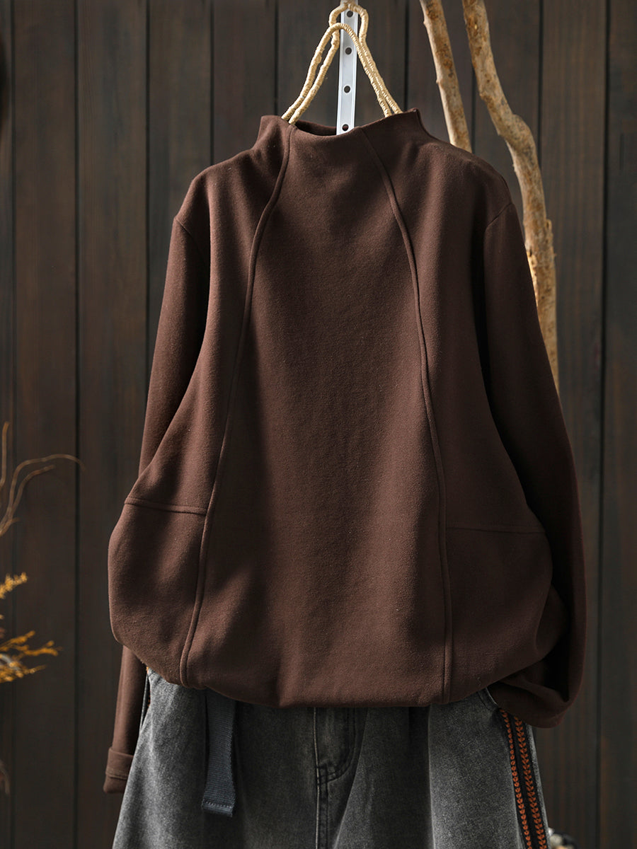 Blusa feminina de inverno casual, lisa, com gola alta e detalhes em cor única.