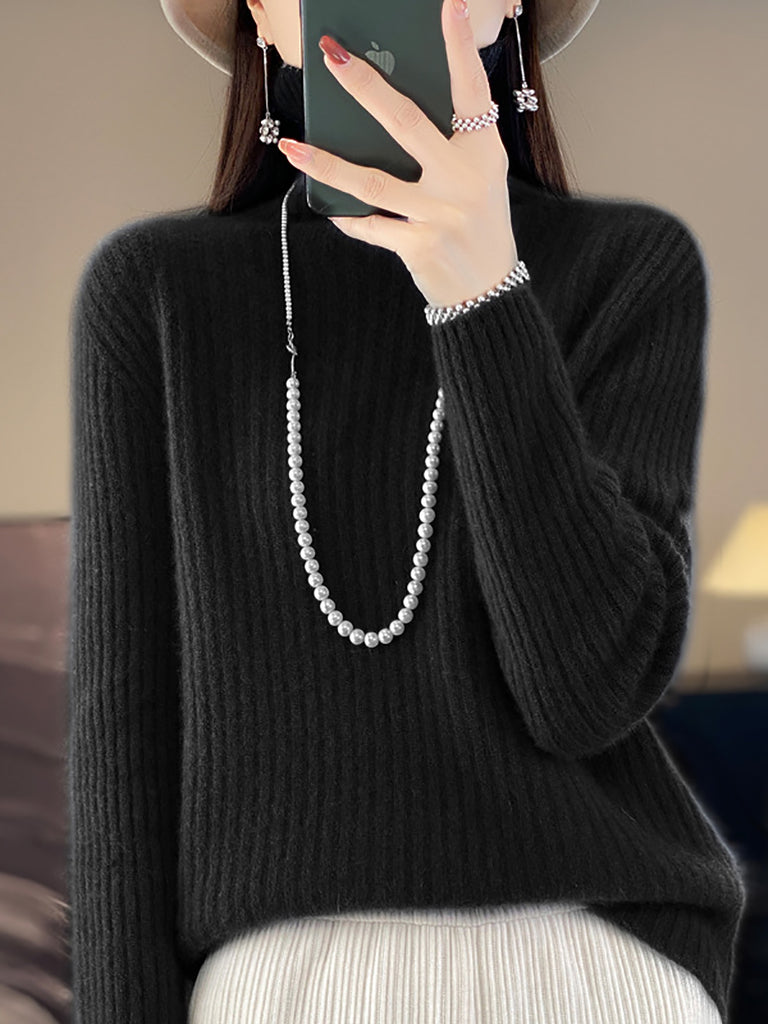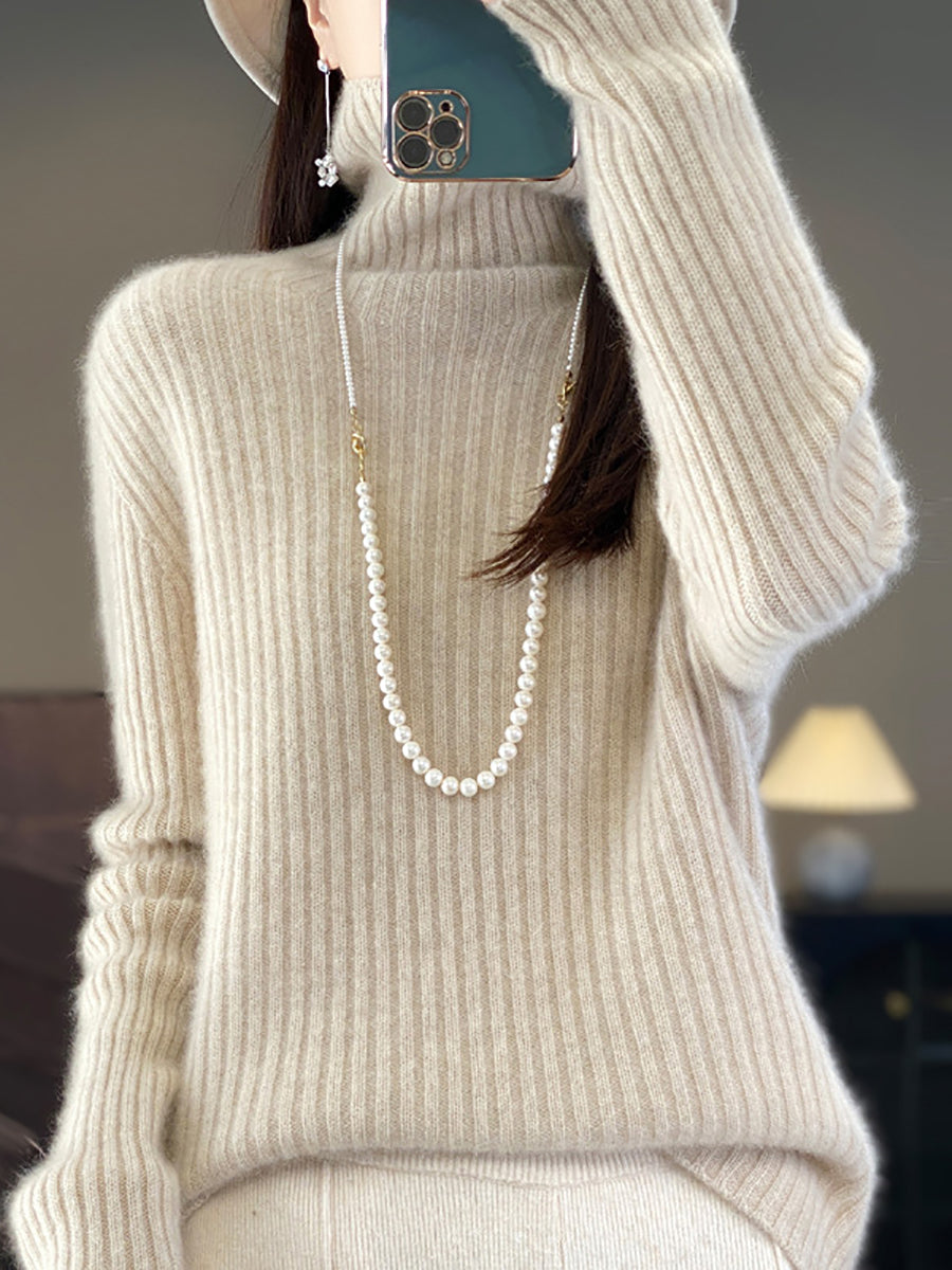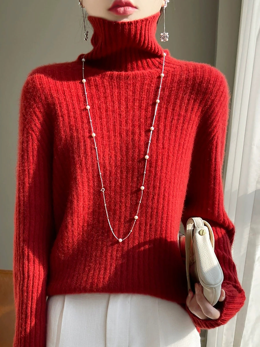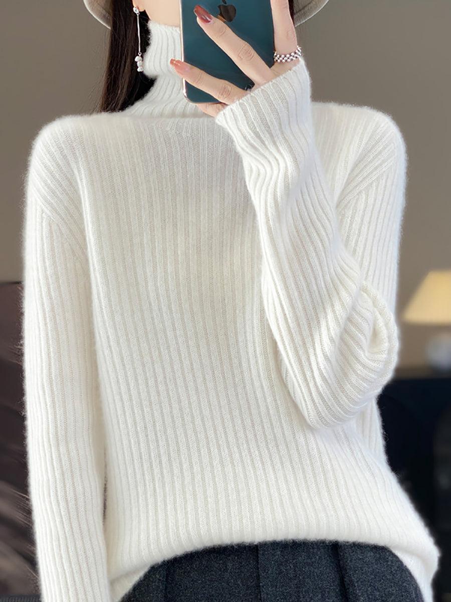Suéter feminino de gola alta em lã de cor lisa para o inverno