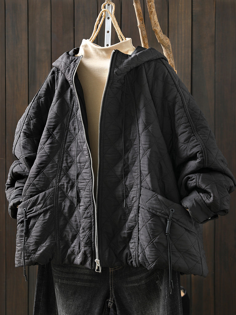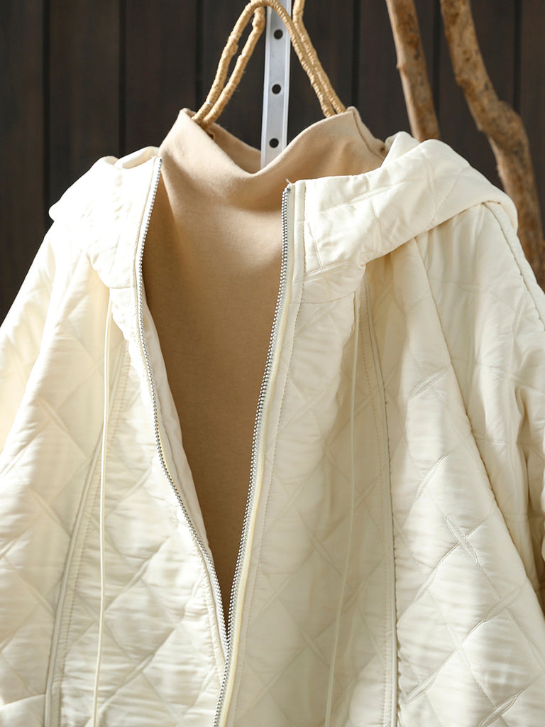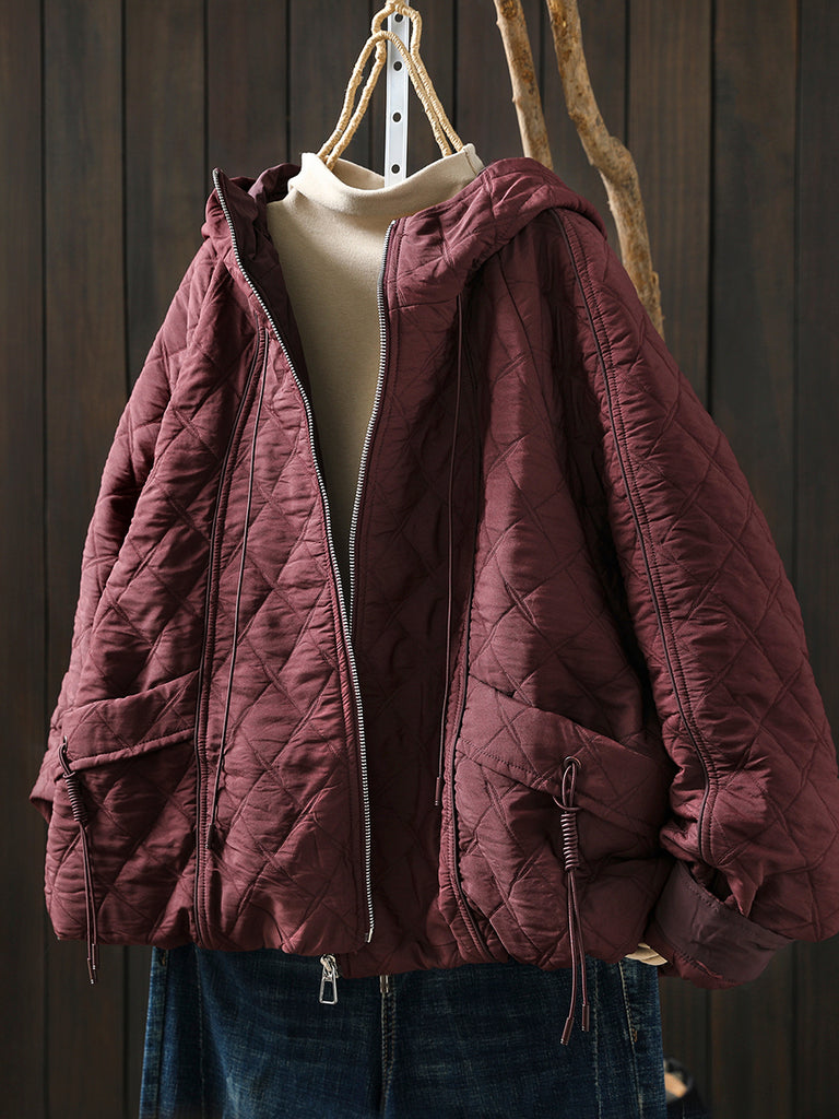 Casaco feminino de inverno retrô com capuz e acolchoado em cor lisa.