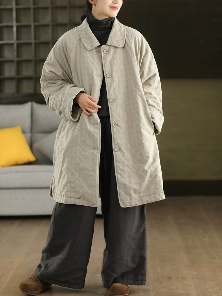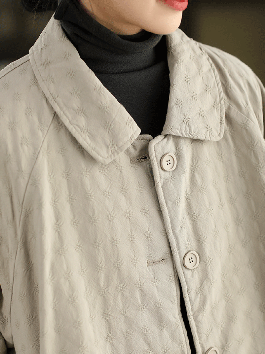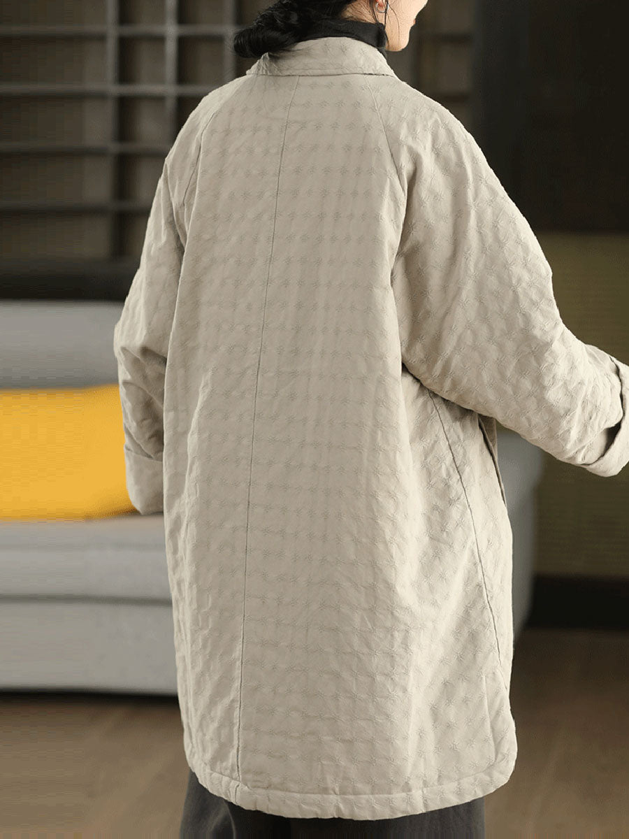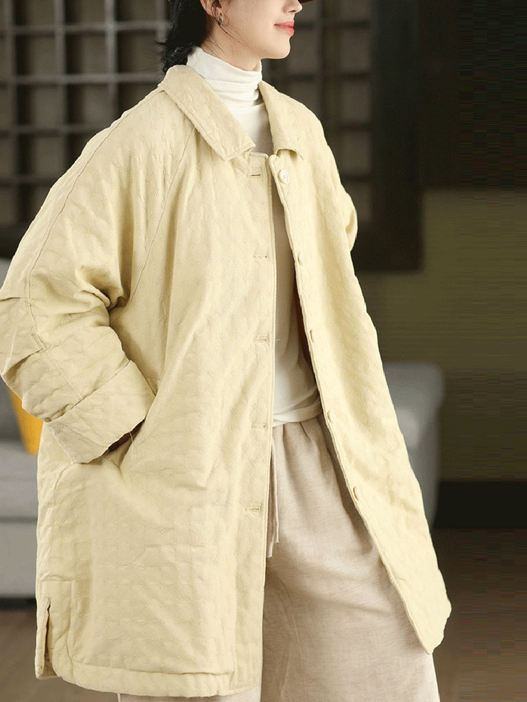 Casaco feminino de inverno retrô em cor lisa com gola dobrável