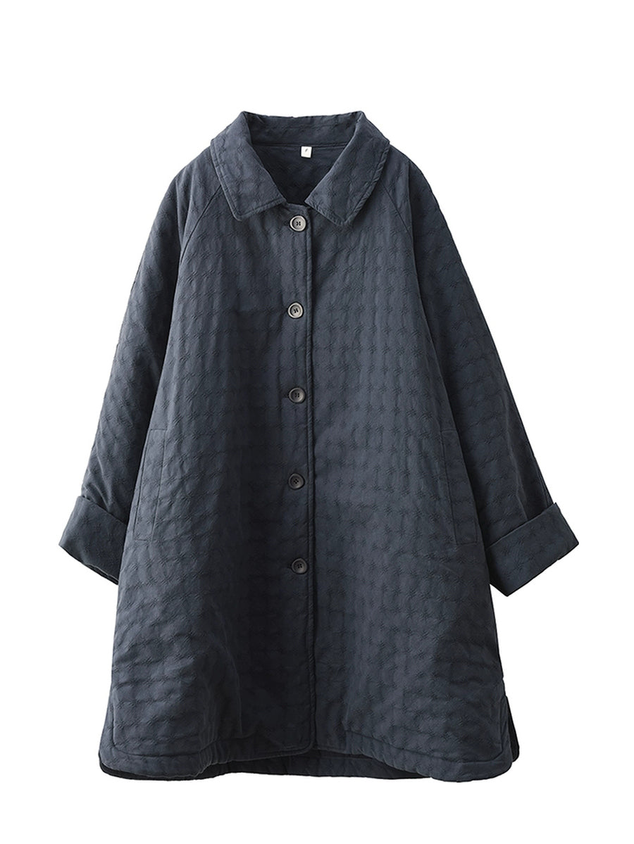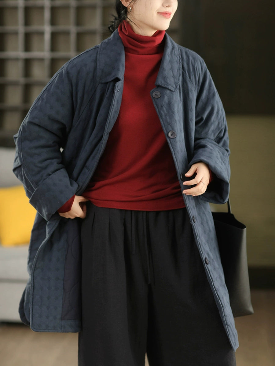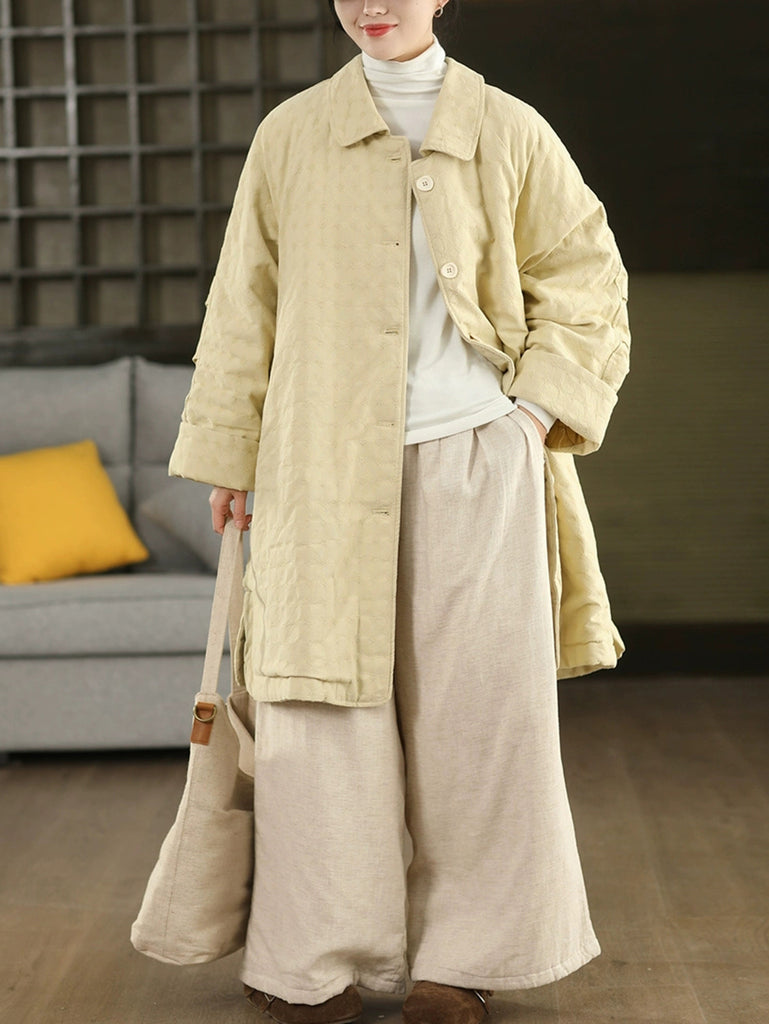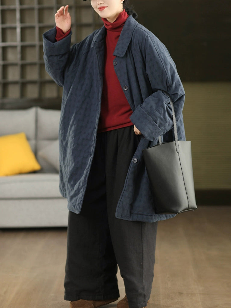 Casaco feminino de inverno retrô em cor lisa com gola dobrável
