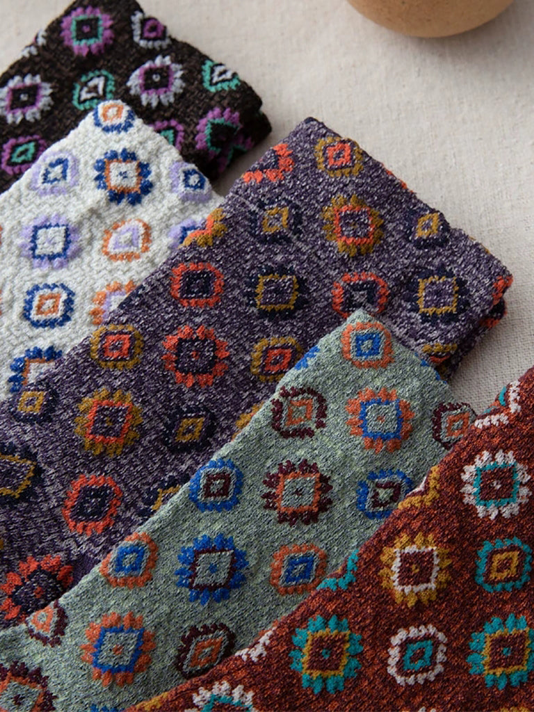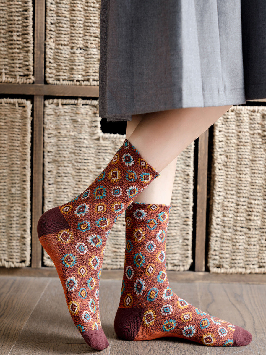 5 pares de meias femininas de algodão com salto médio e estampa floral Artsy