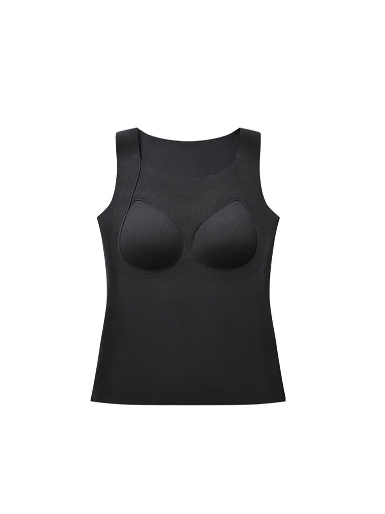 Colete feminino de inverno, quente, em cor lisa, com base acolchoada.