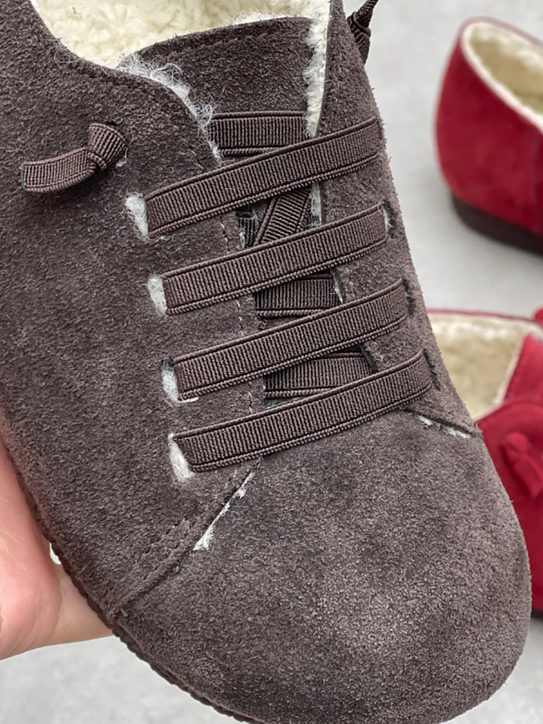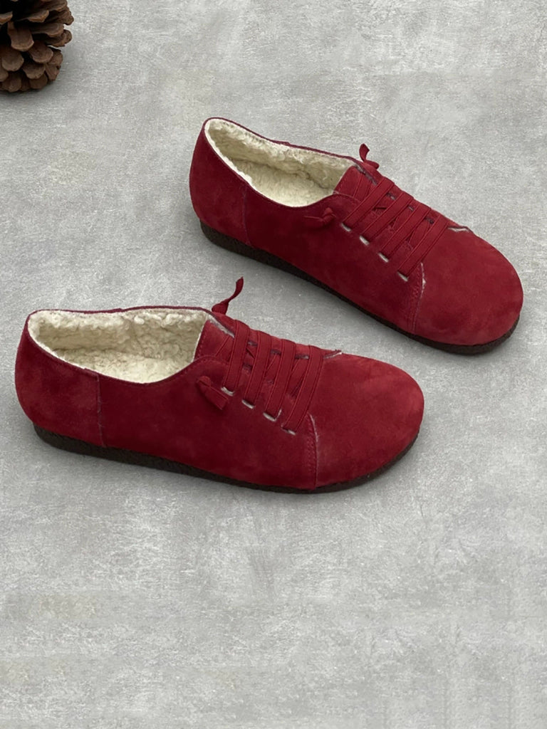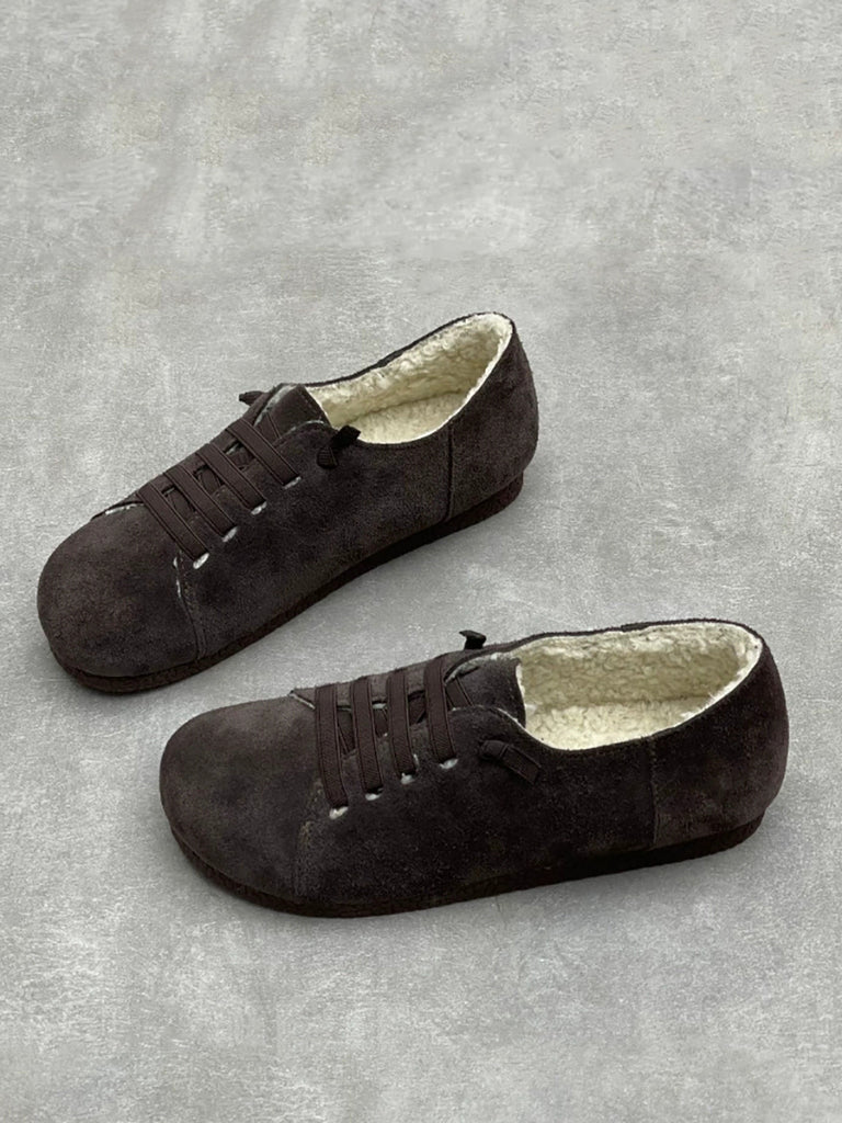 Sapatos femininos vintage de couro genuíno com forro de lã