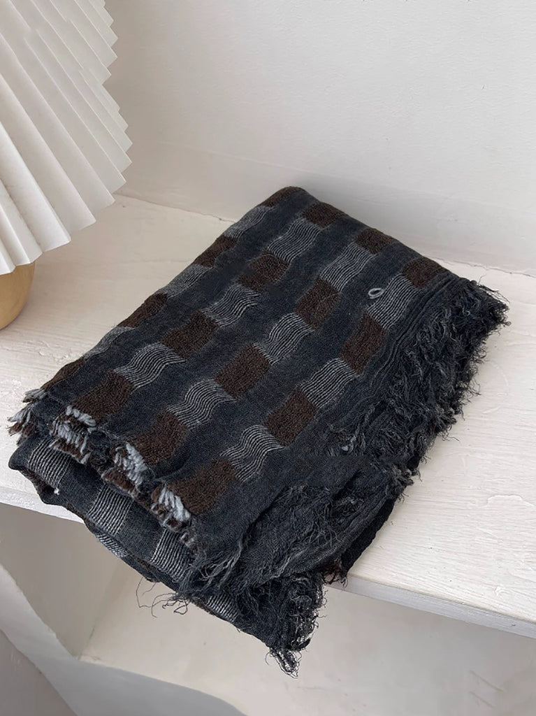 Cachecol feminino vintage xadrez com borla xale