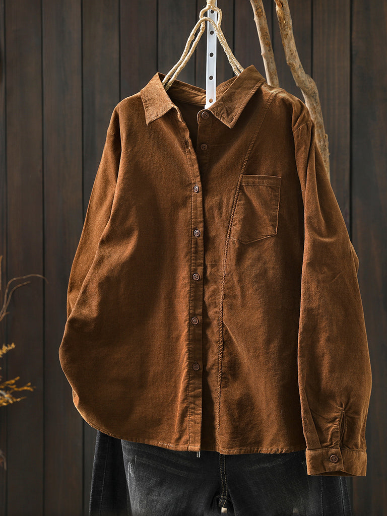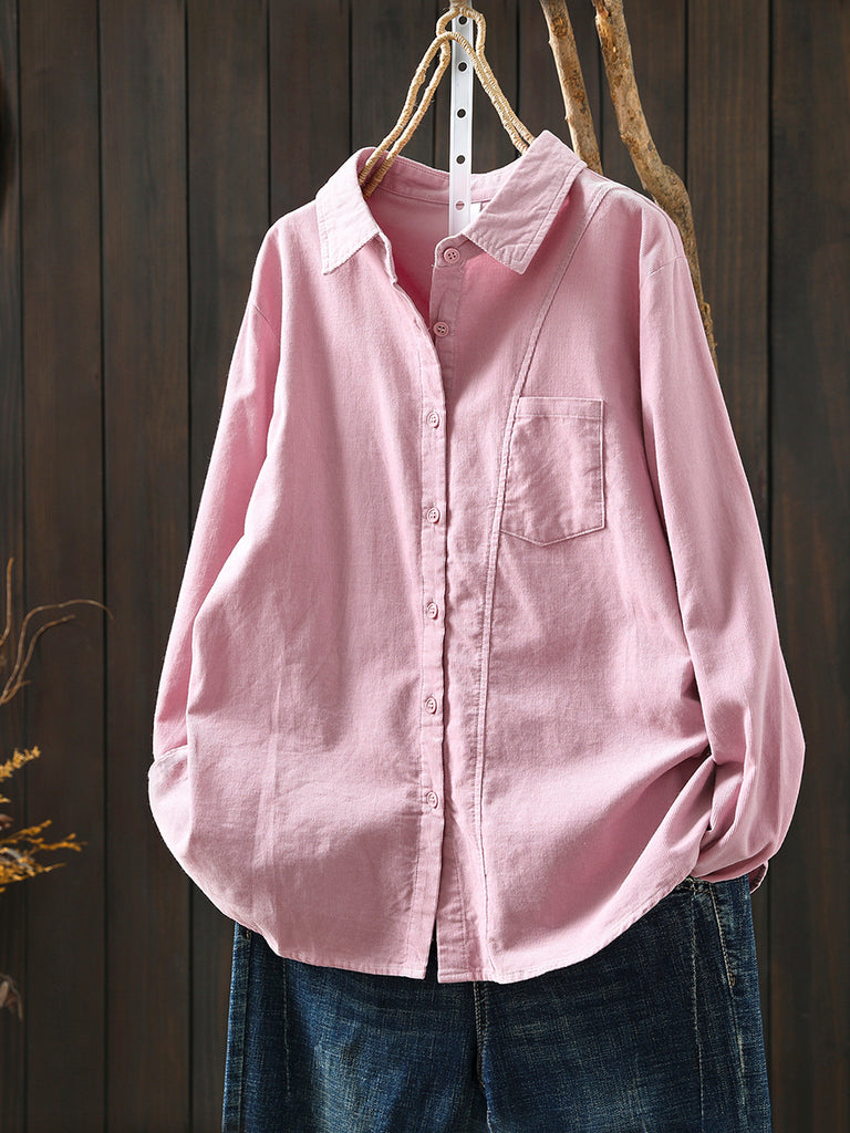 Camisa feminina Artsy 100% algodão cor lisa com gola dobrável