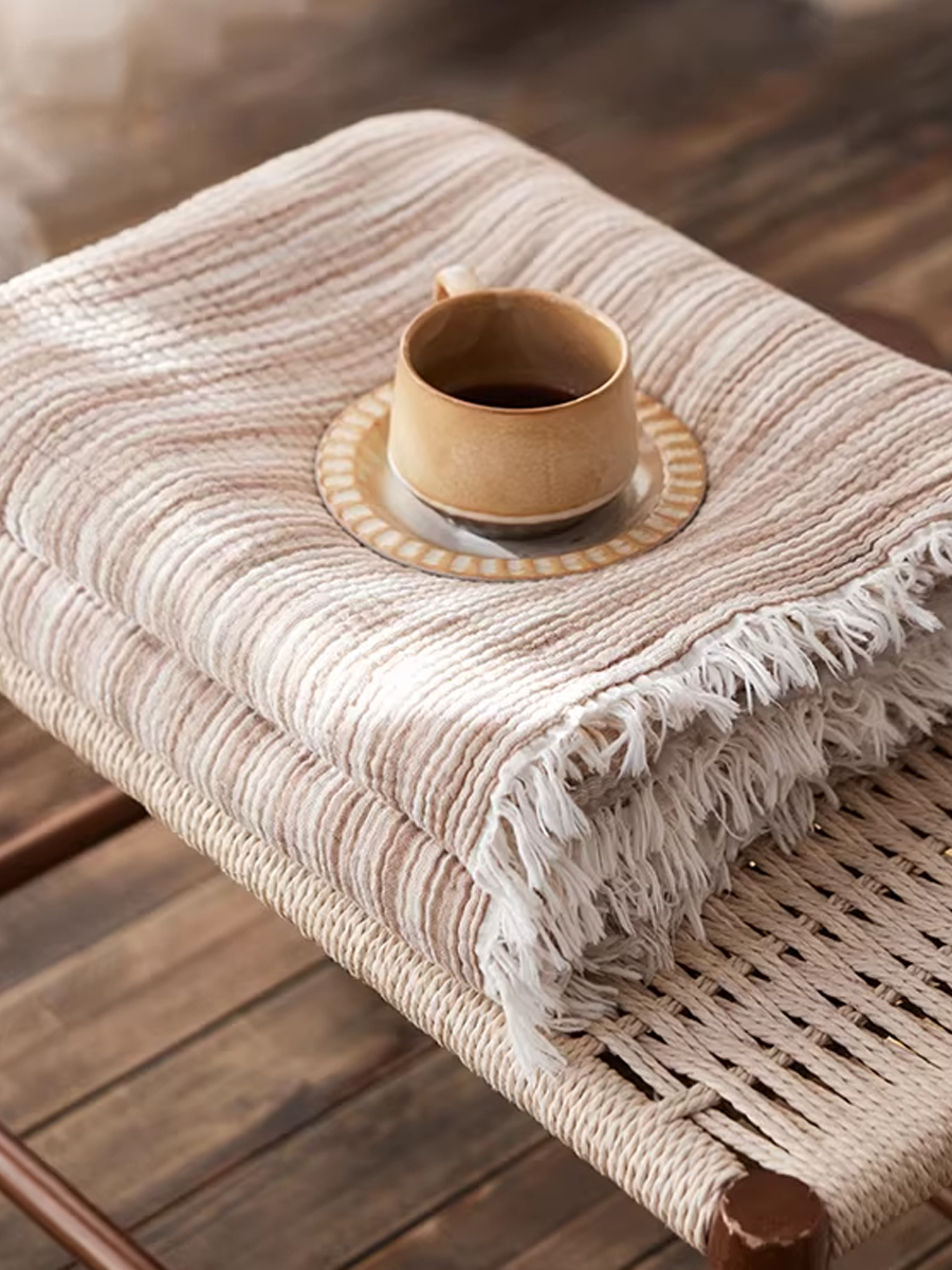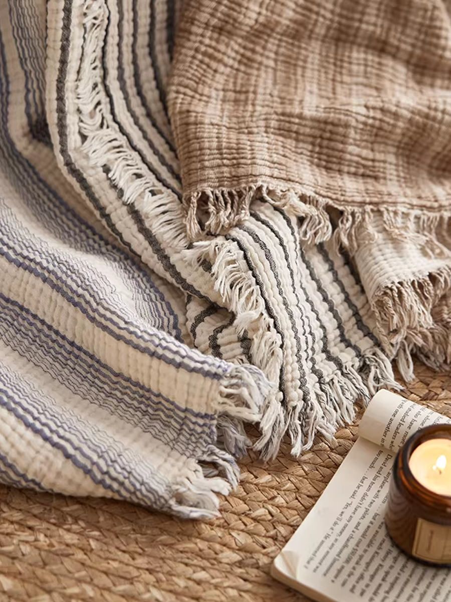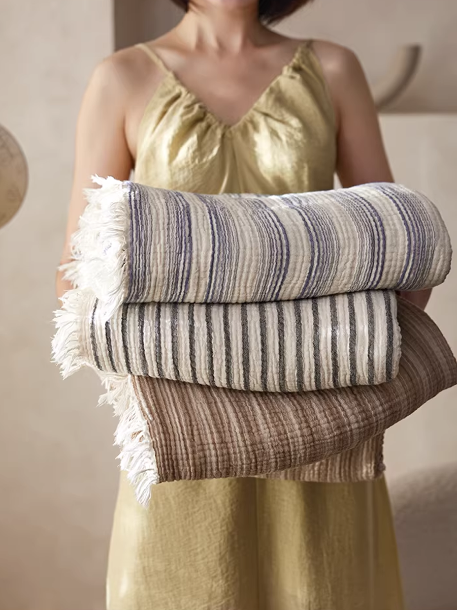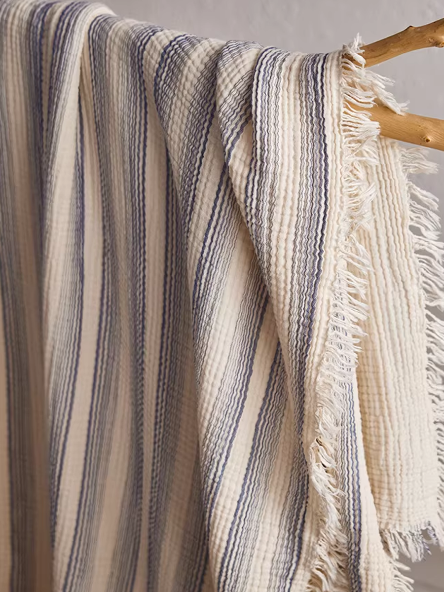 Manta listrada de gaze tingida com fios