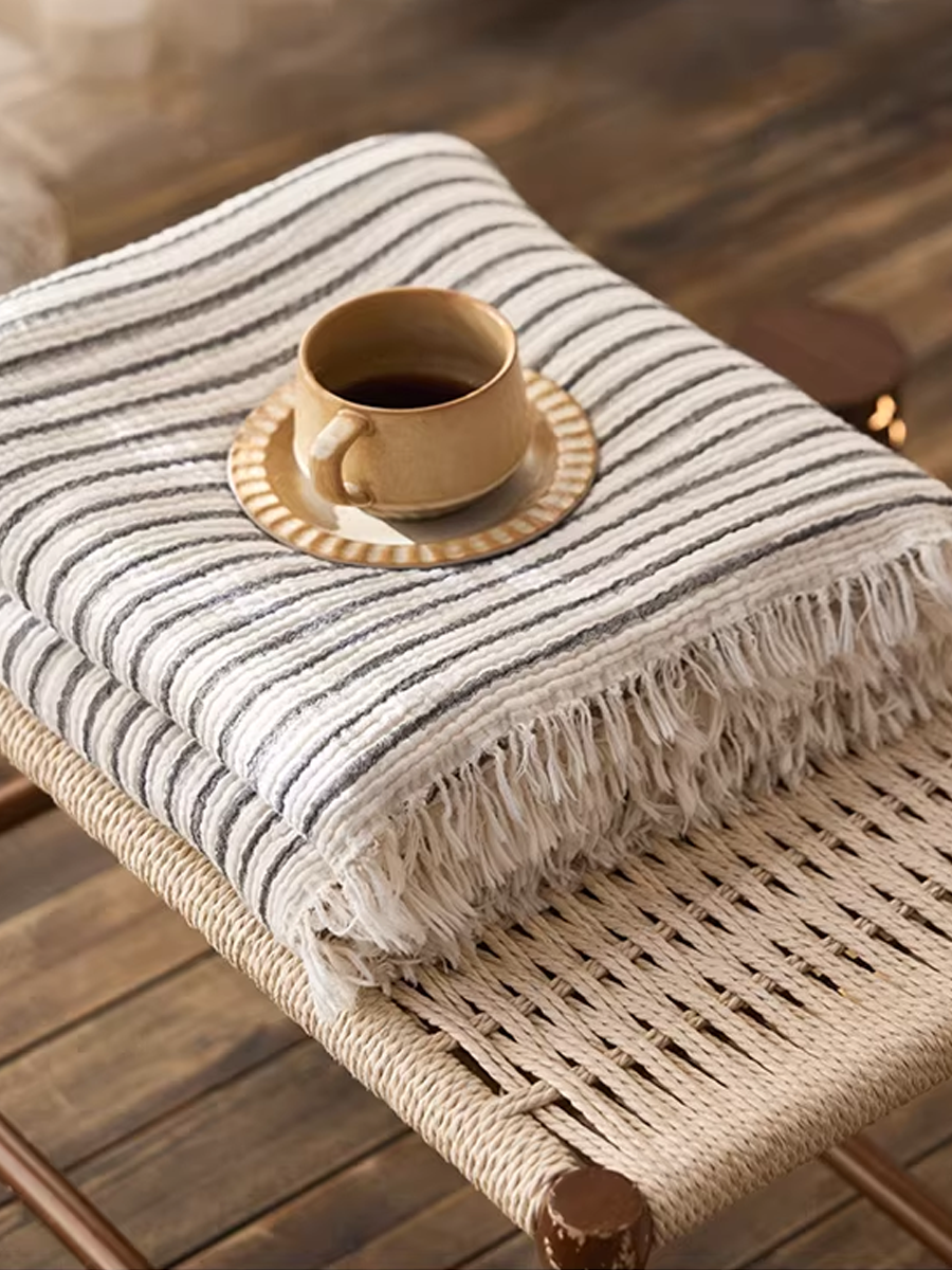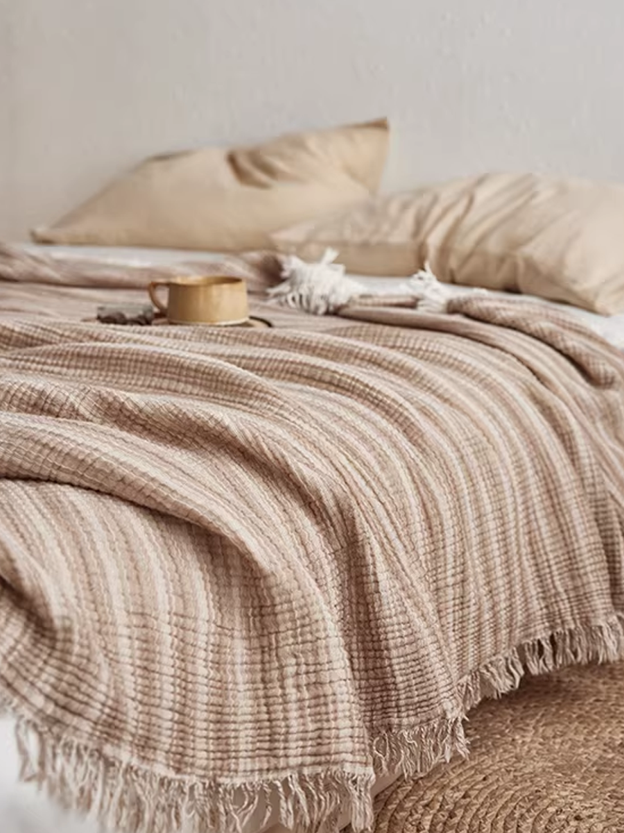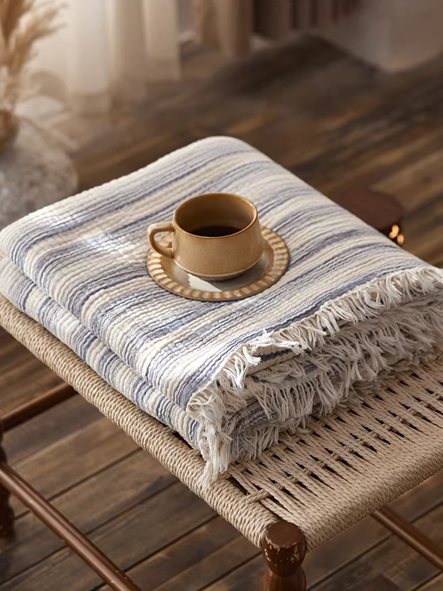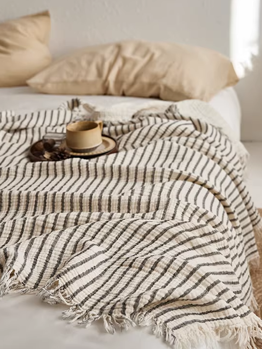 Manta listrada de gaze tingida com fios