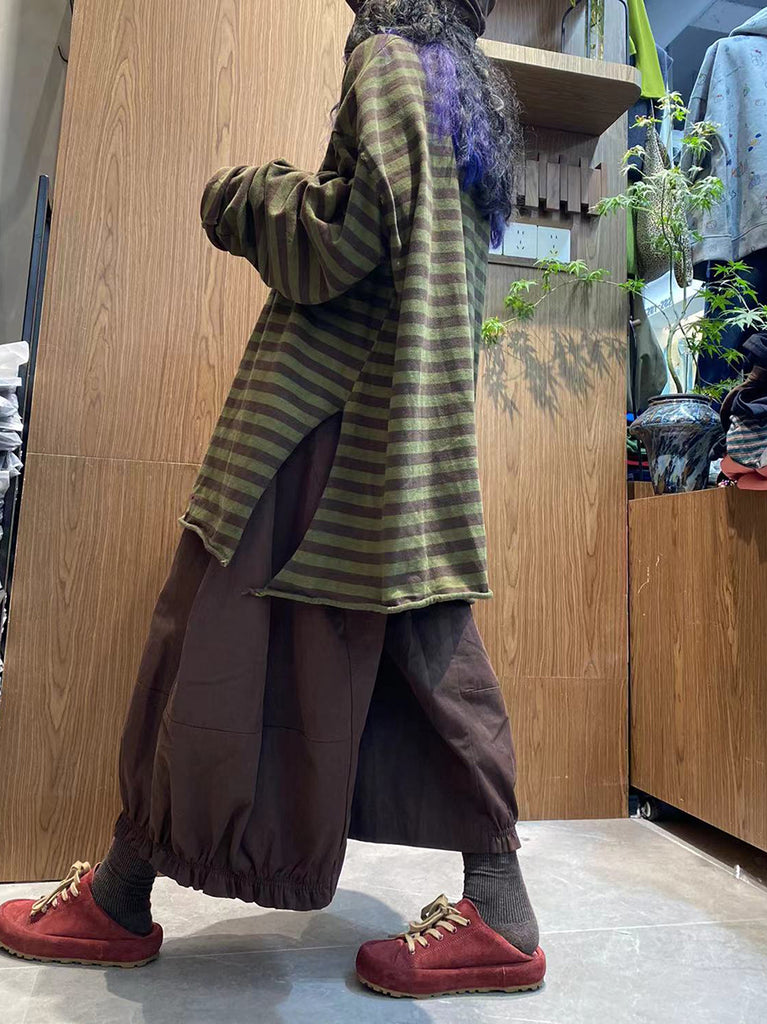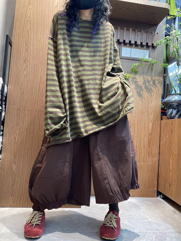 Blusa feminina listrada vintage de outono 100% algodão com gola redonda