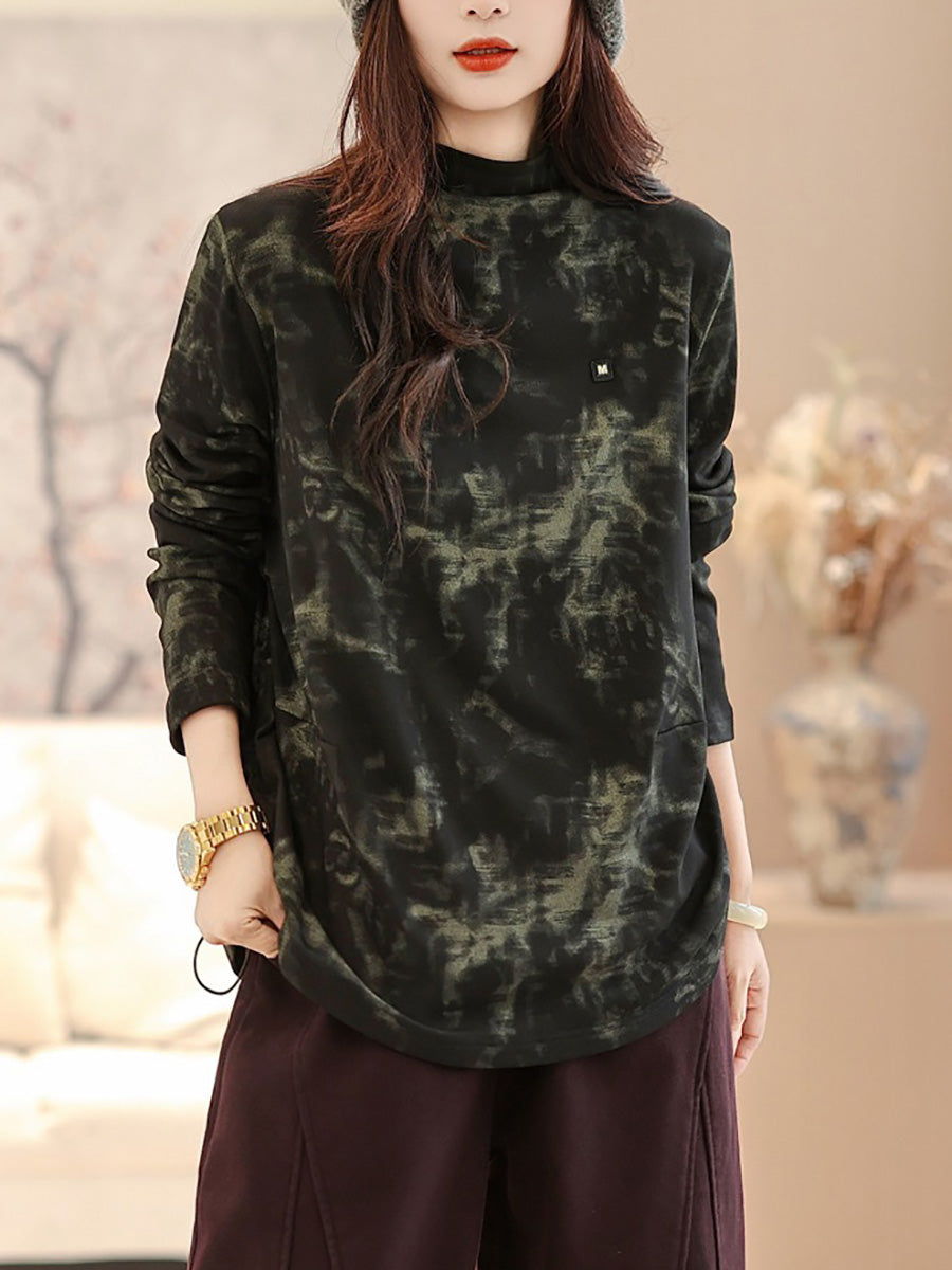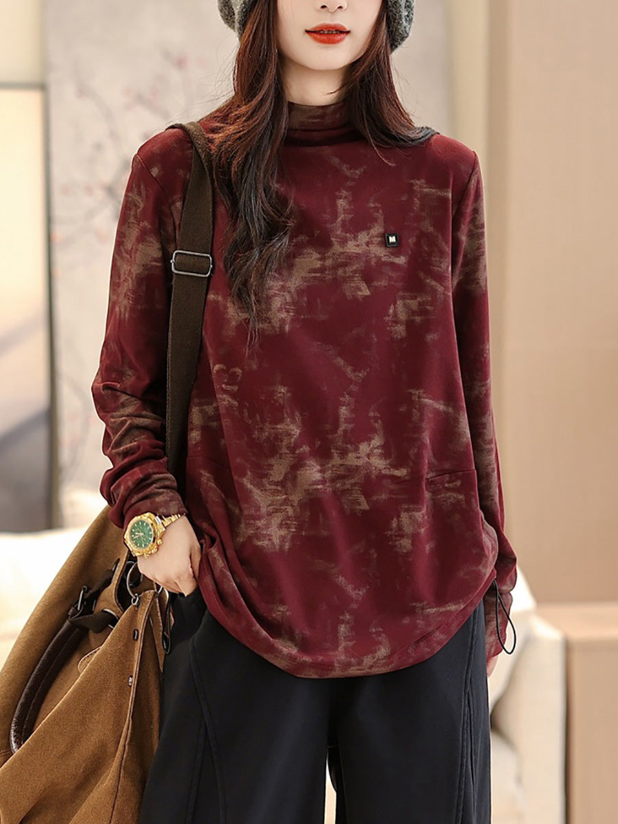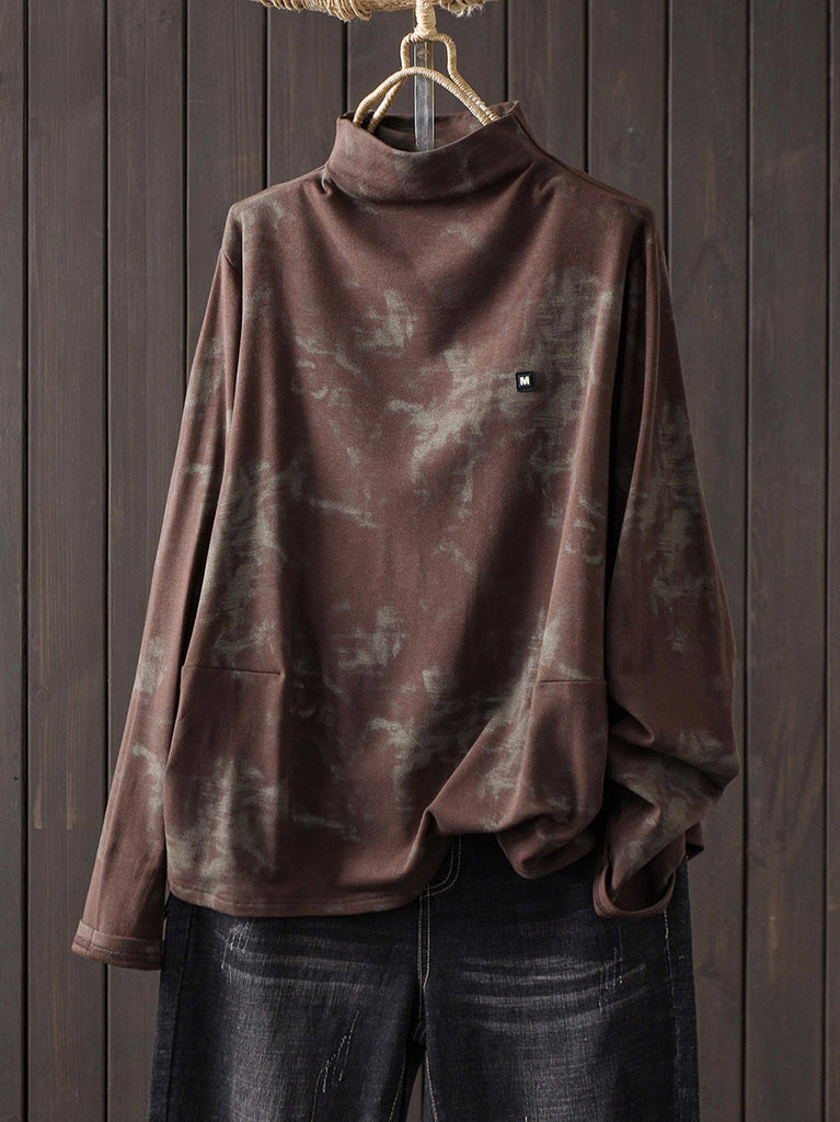 Blusa feminina de gola alta com estampa tie-dye para o outono