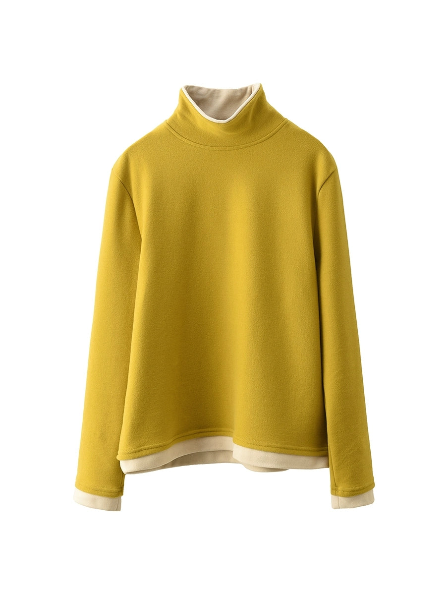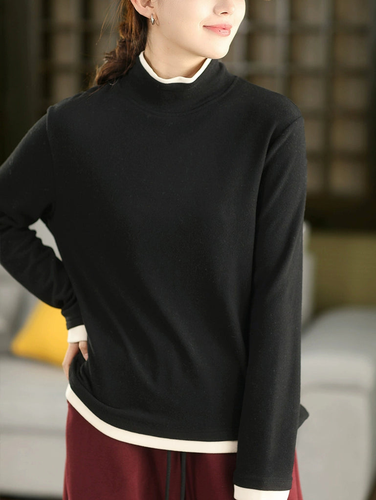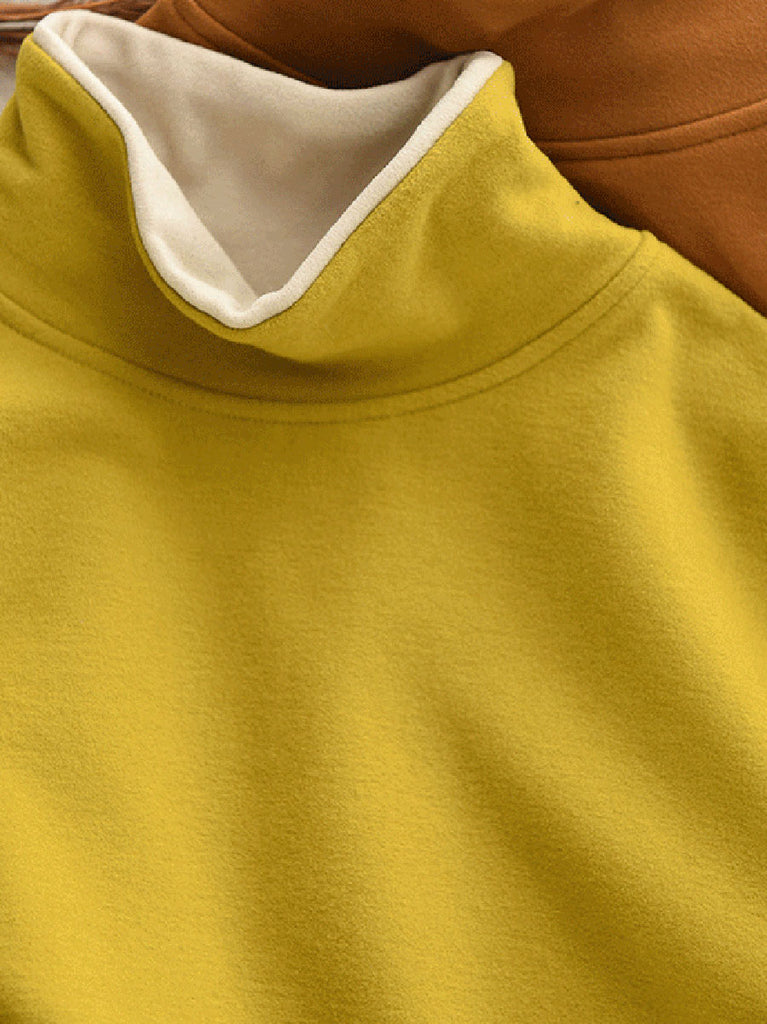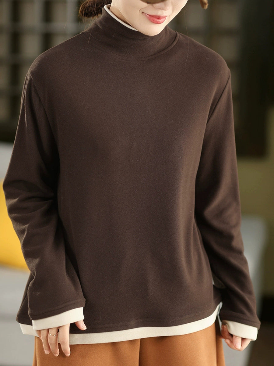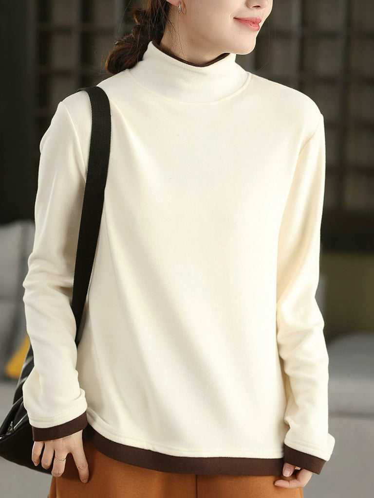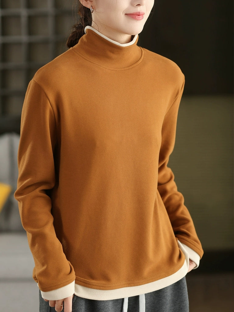 Blusa feminina de inverno casual de gola alta em fleece com blocos de cores
