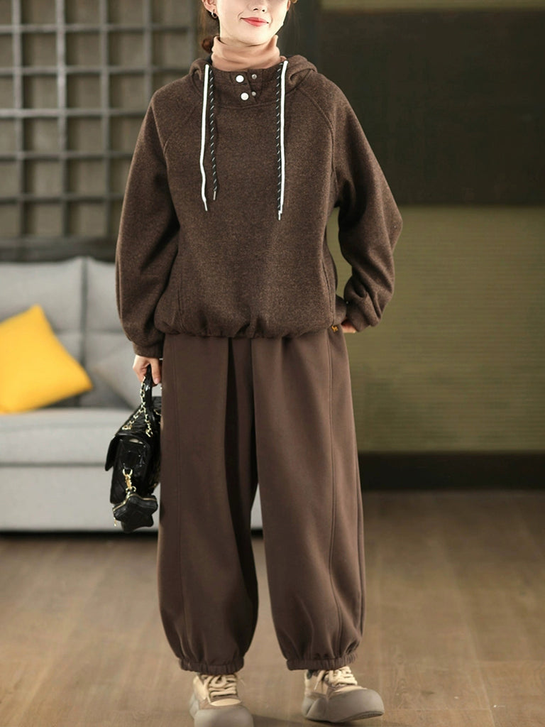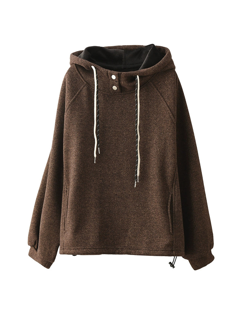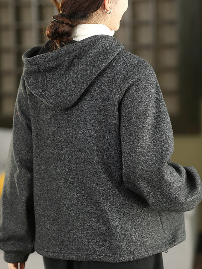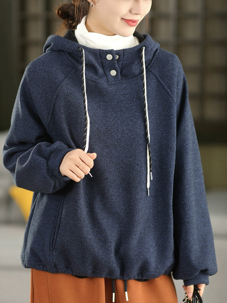 Blusa feminina de inverno casual, lisa, com capuz e forro de lã.