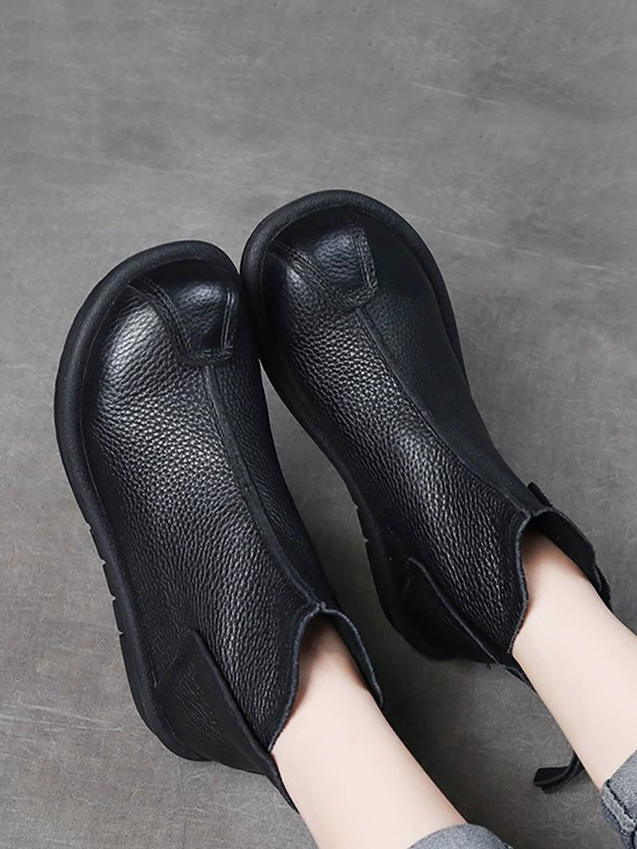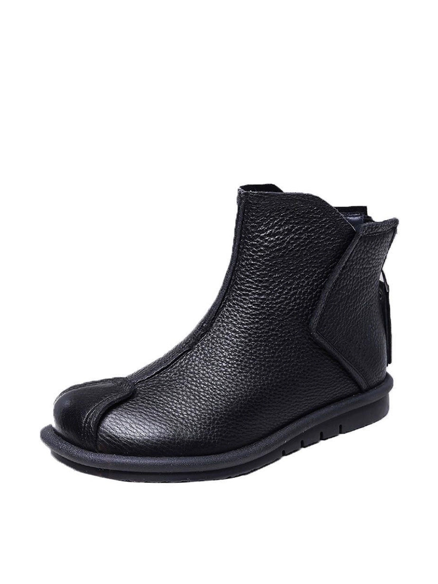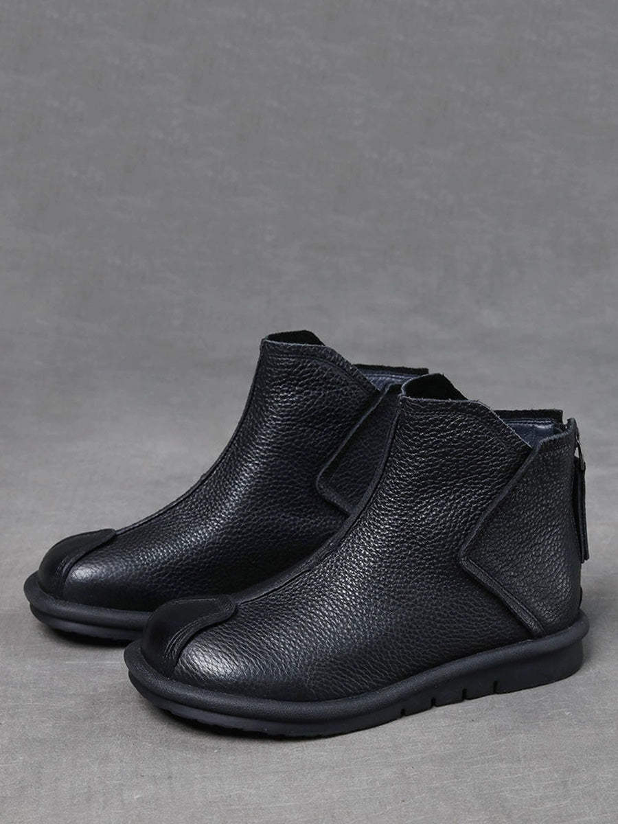 Botas de tornozelo femininas retrô em couro genuíno com detalhes em viés