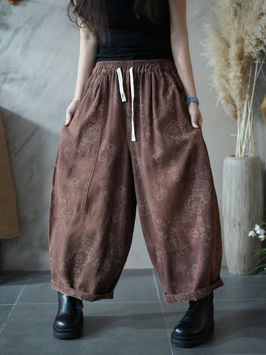 Calça Harem Feminina Retrô Floral Primavera