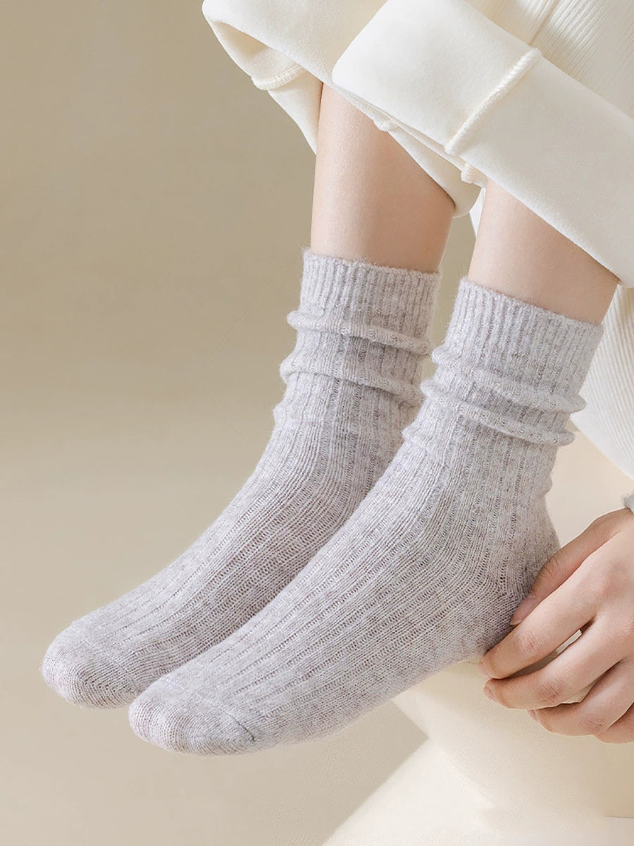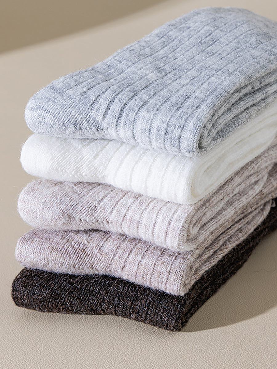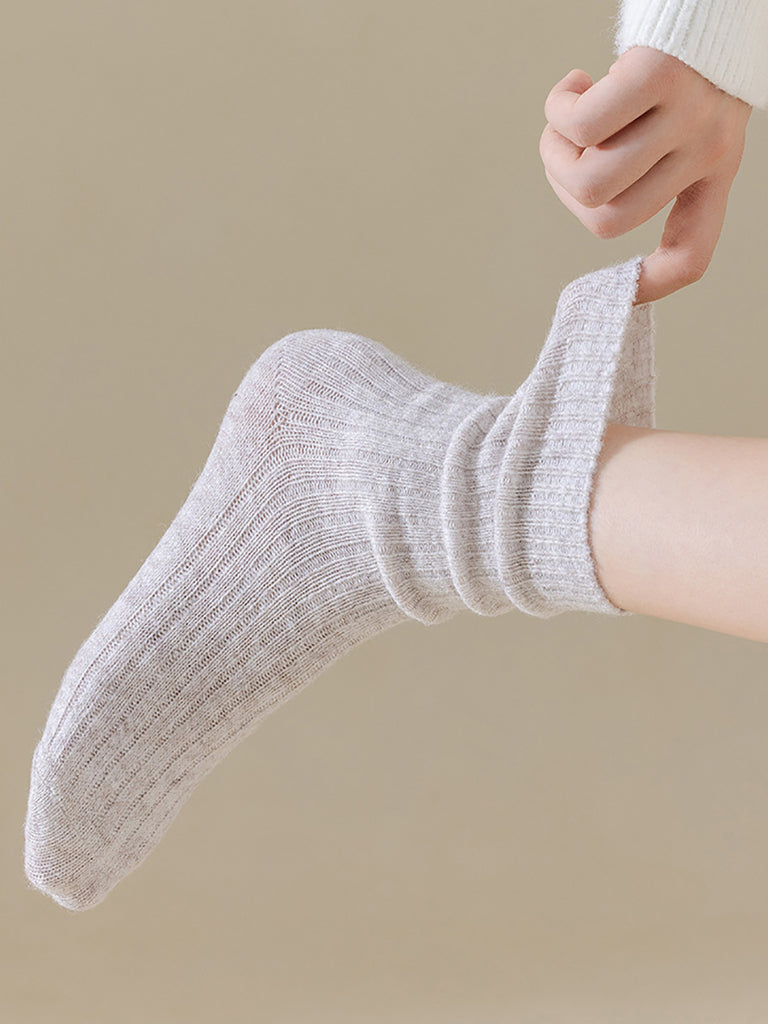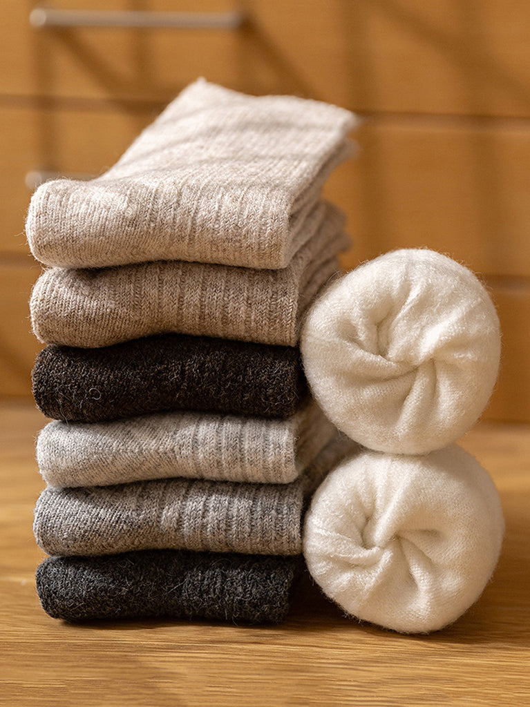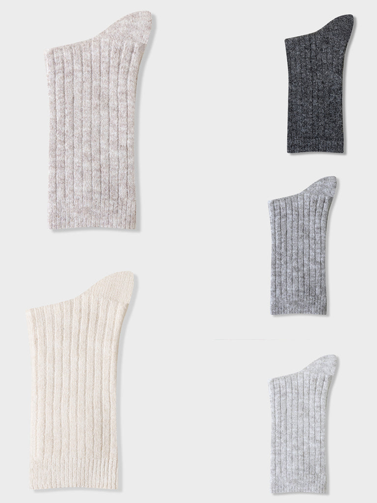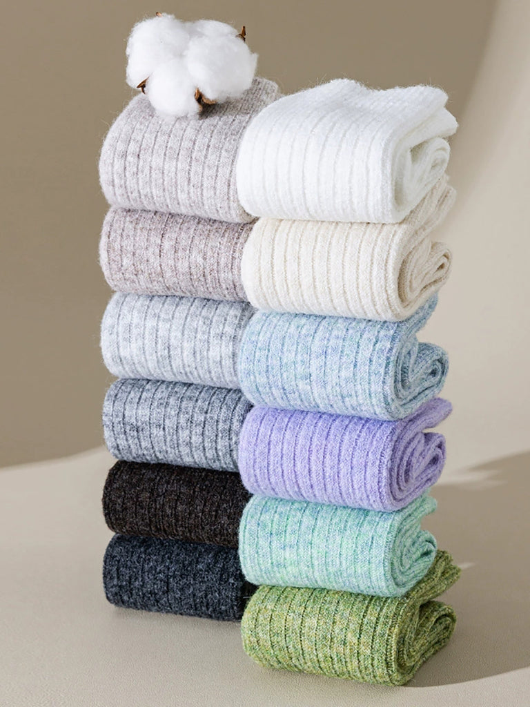 5 pares de meias femininas de inverno, quentes e de cor lisa.