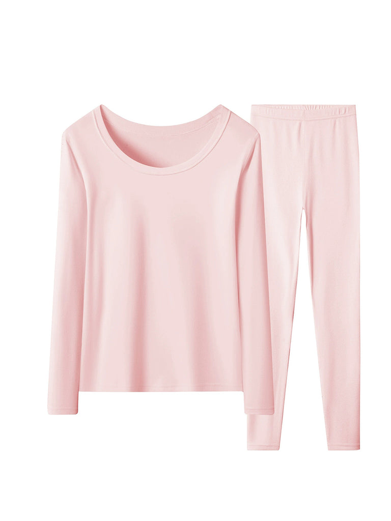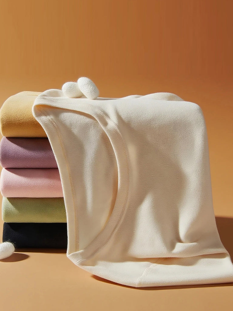 Conjuntos de inverno com calças de cor lisa para manter o corpo aquecido.