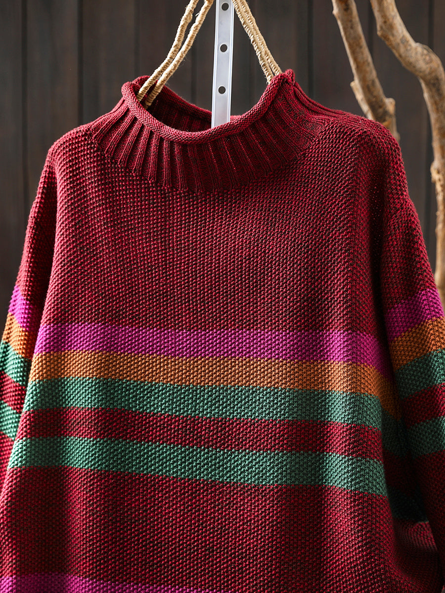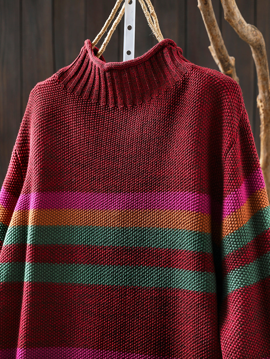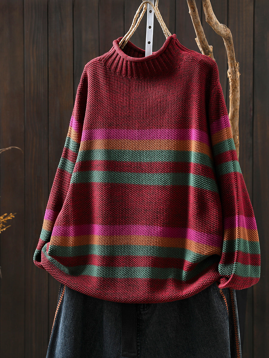 Suéter feminino de gola alta com listras artísticas para o outono