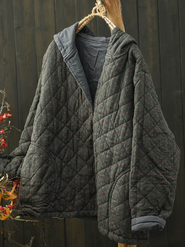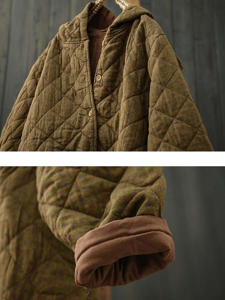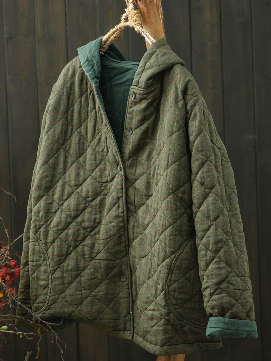 Casaco acolchoado com capuz feminino retrô em algodão de cor lisa