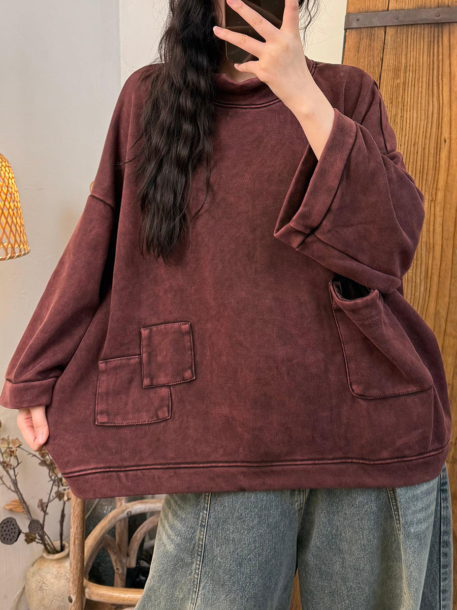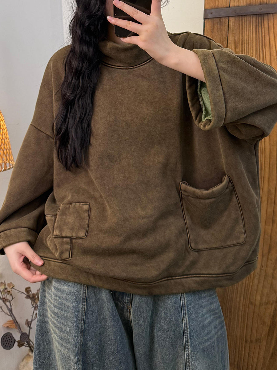 Blusa feminina vintage de outono com gola alta e forro de lã.
