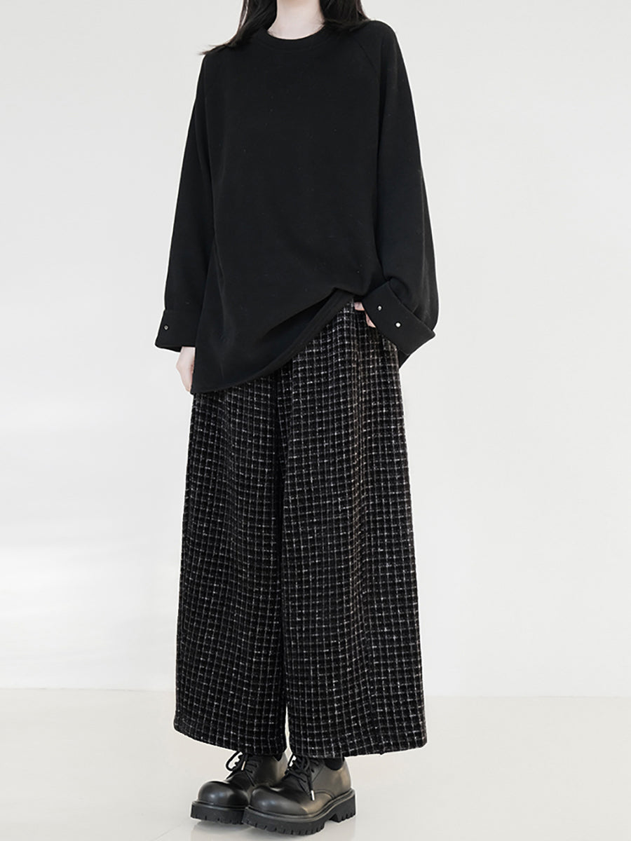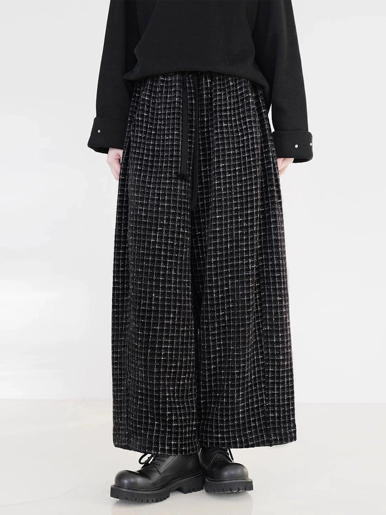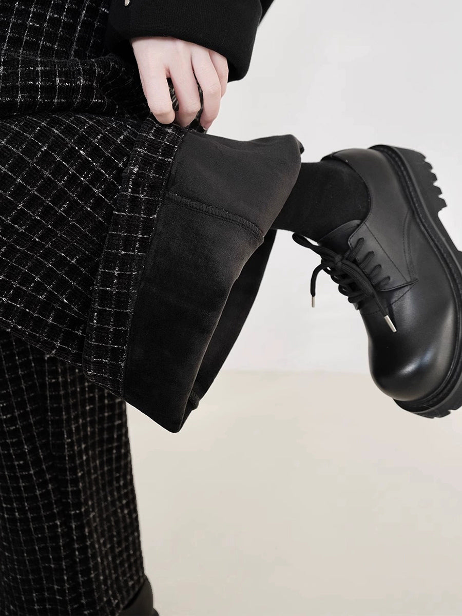 Calças retas femininas vintage xadrez com forro de lã