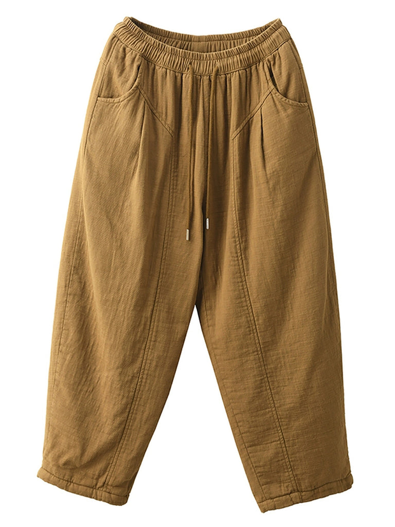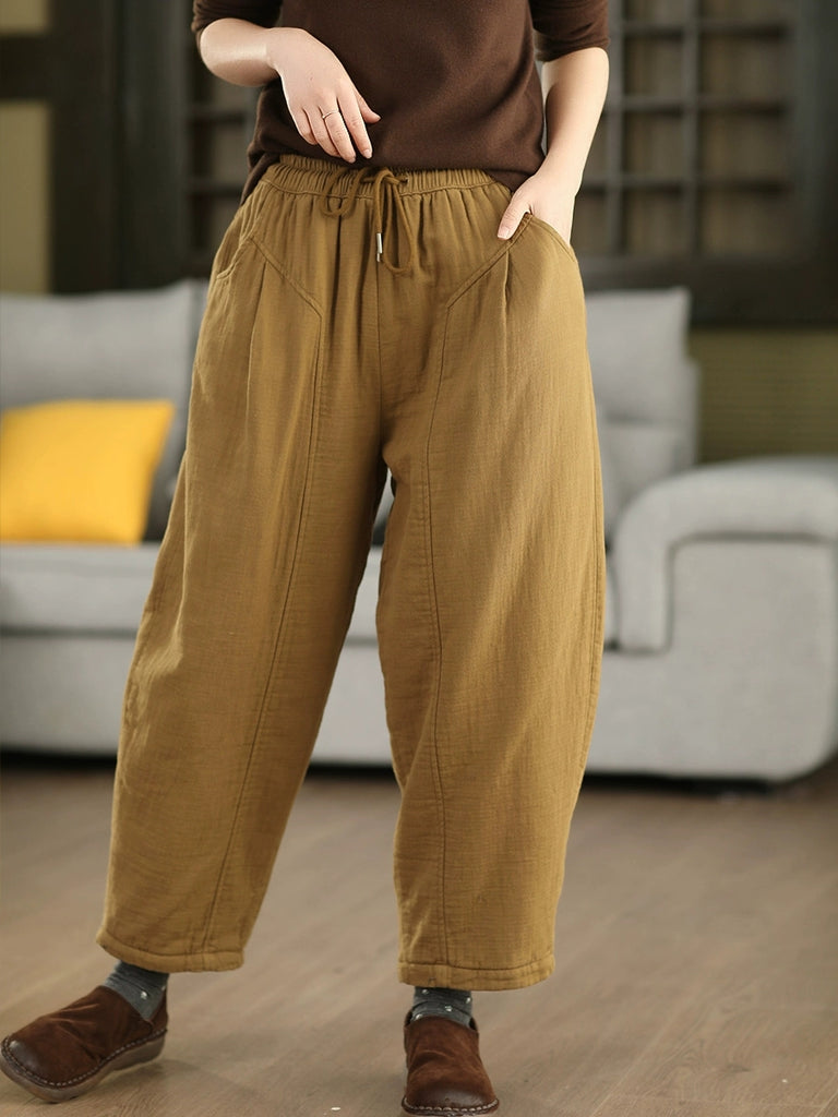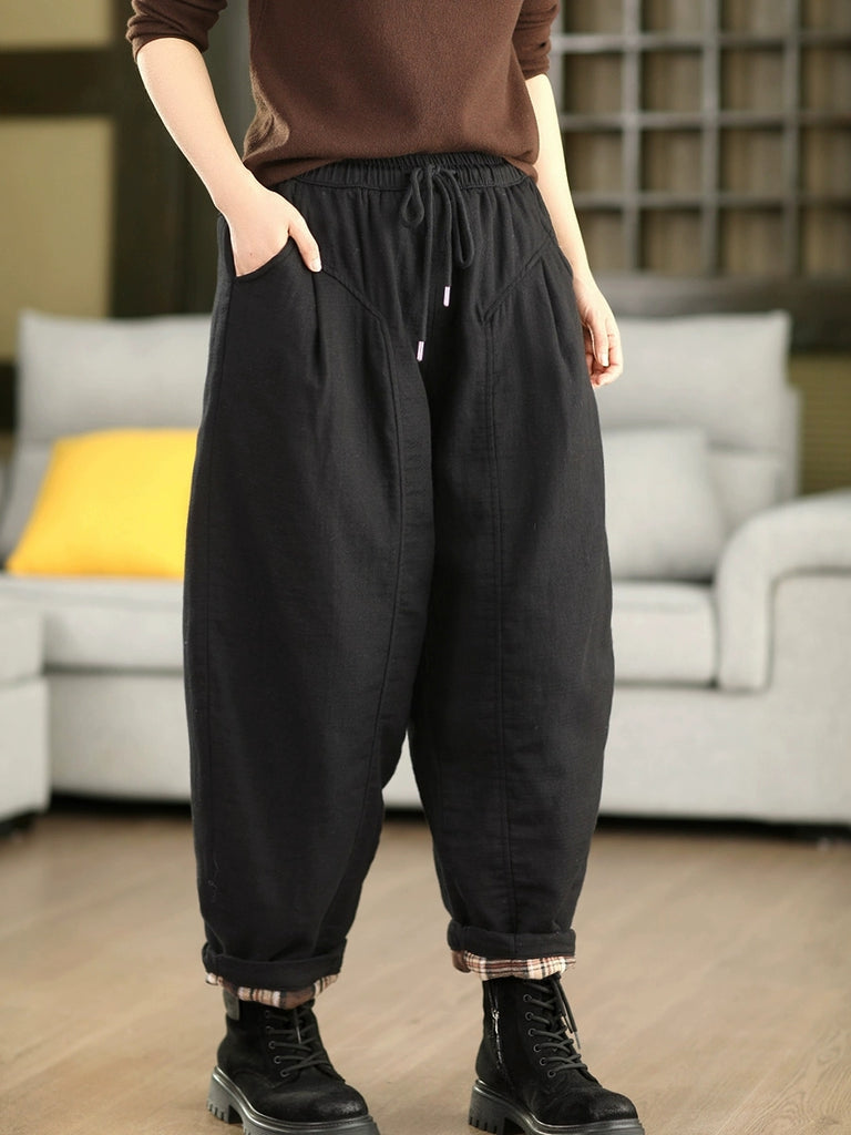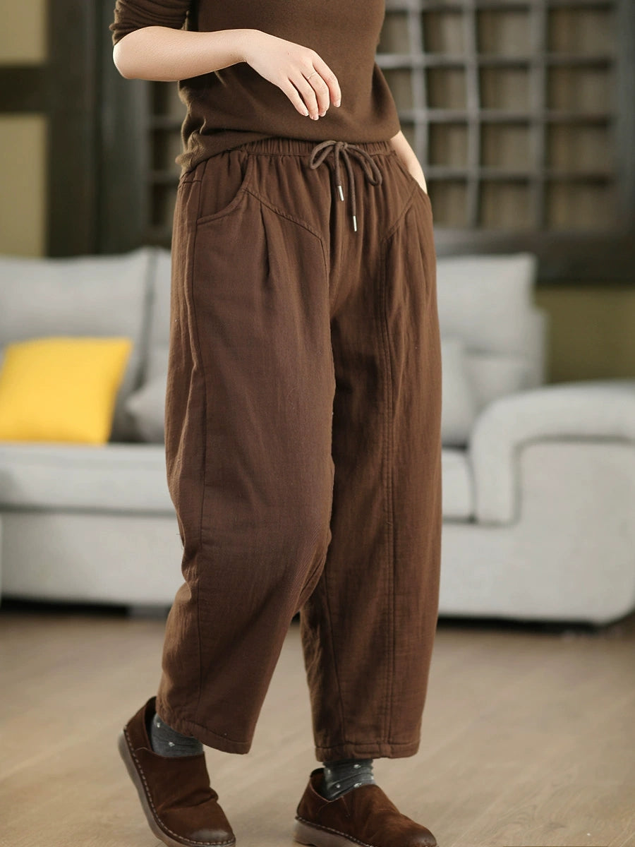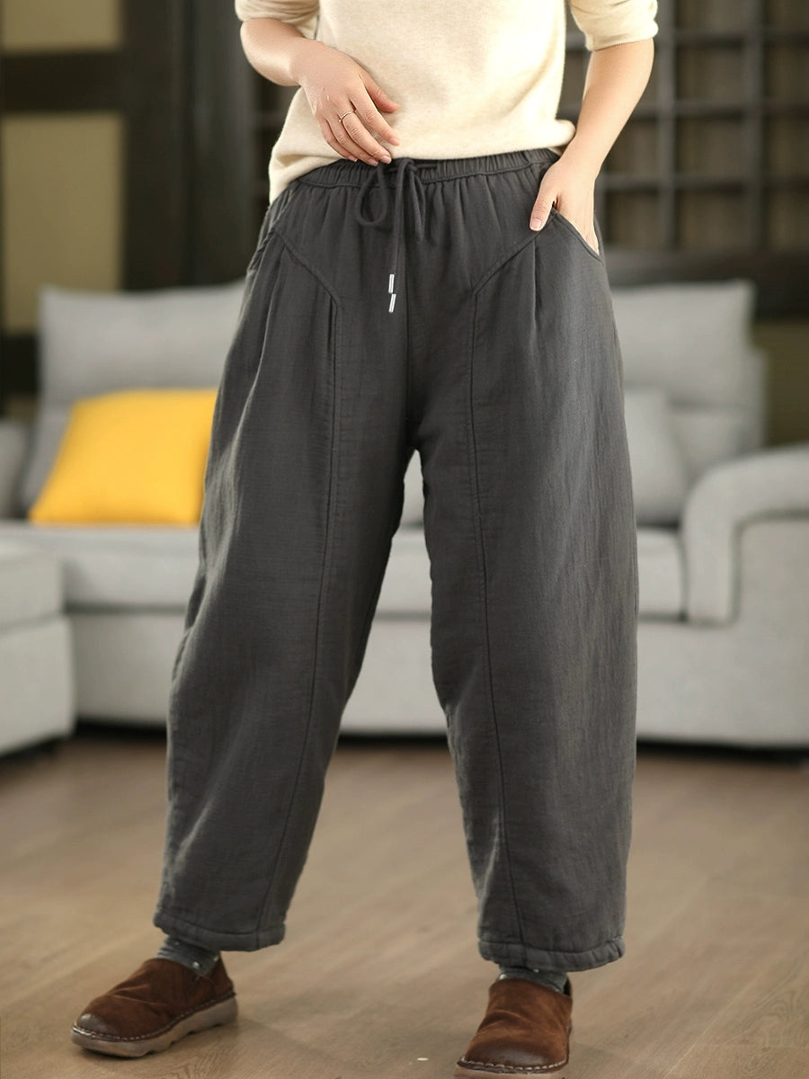 Calça Harem Feminina Casual de Inverno em Algodão Liso com Acolchoamento