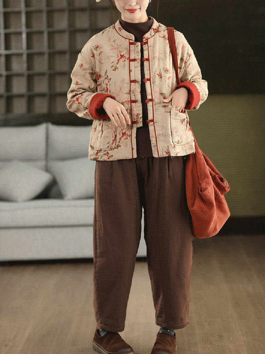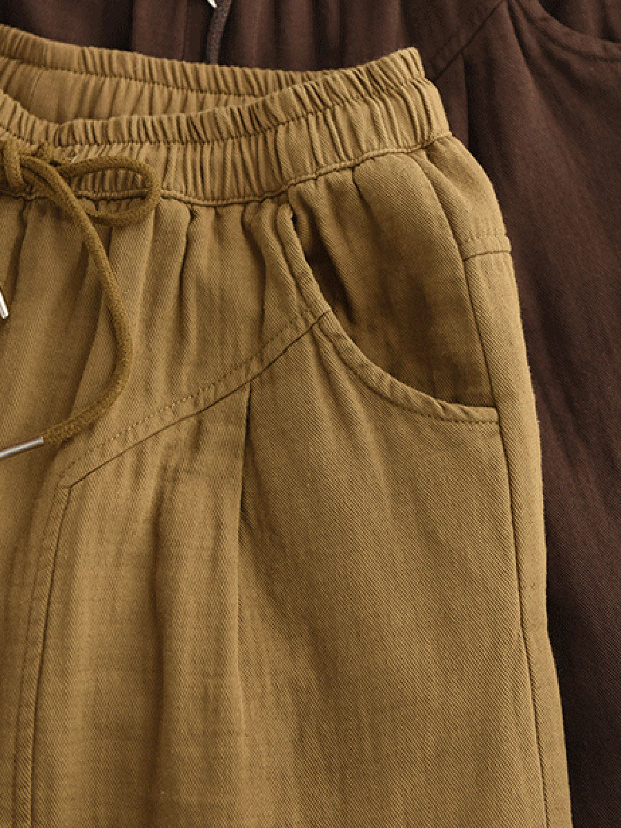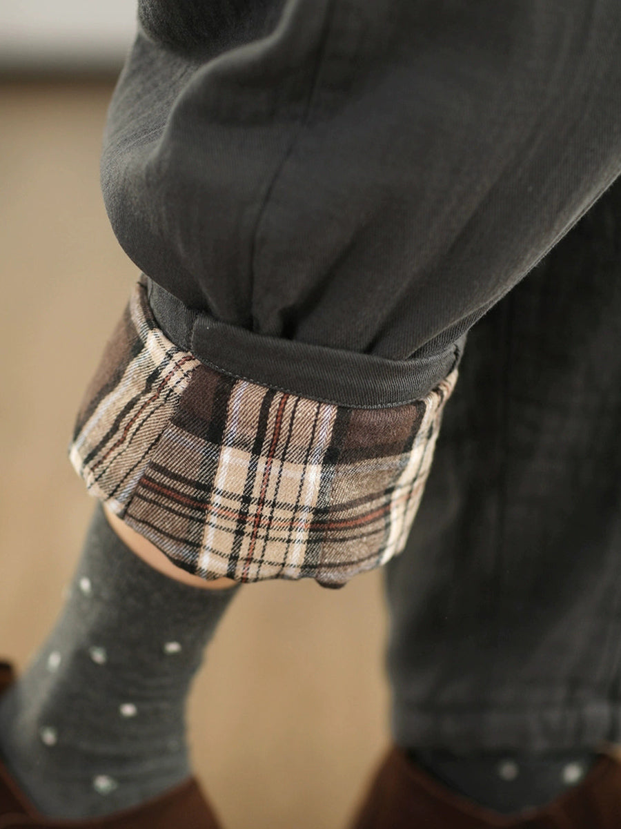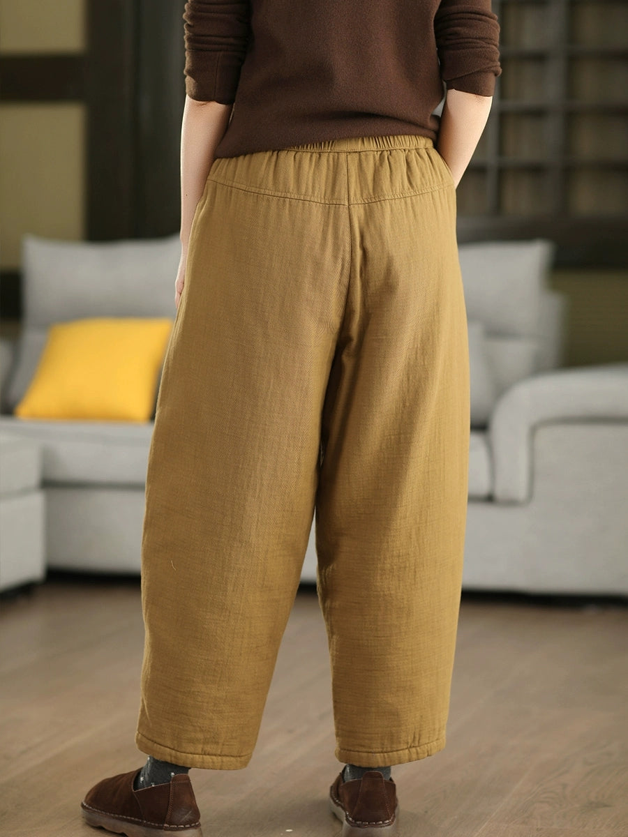 Calça Harem Feminina Casual de Inverno em Algodão Liso com Acolchoamento