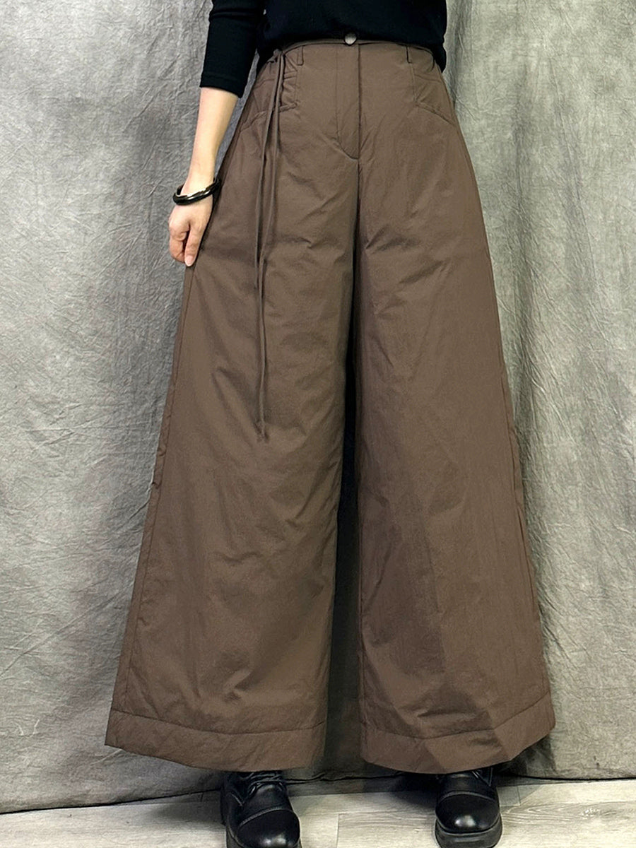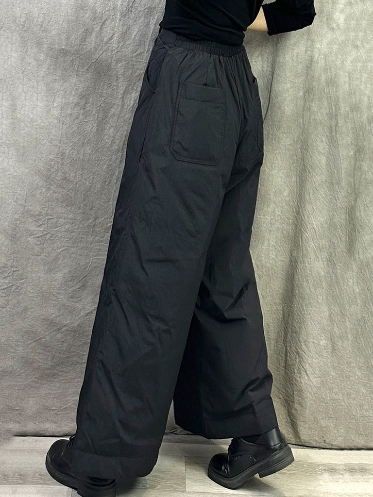 Calça feminina casual de inverno, cor lisa, com enchimento de plumas e pernas largas.