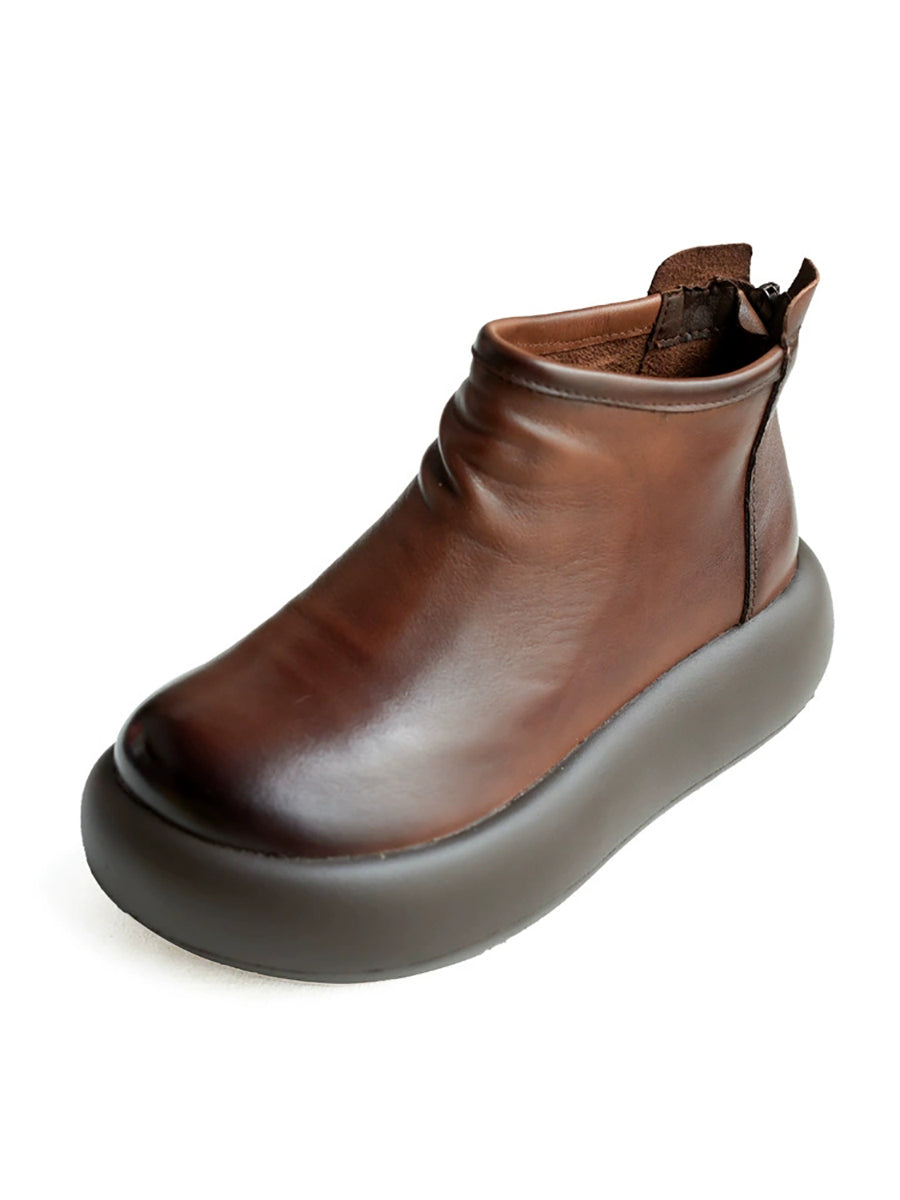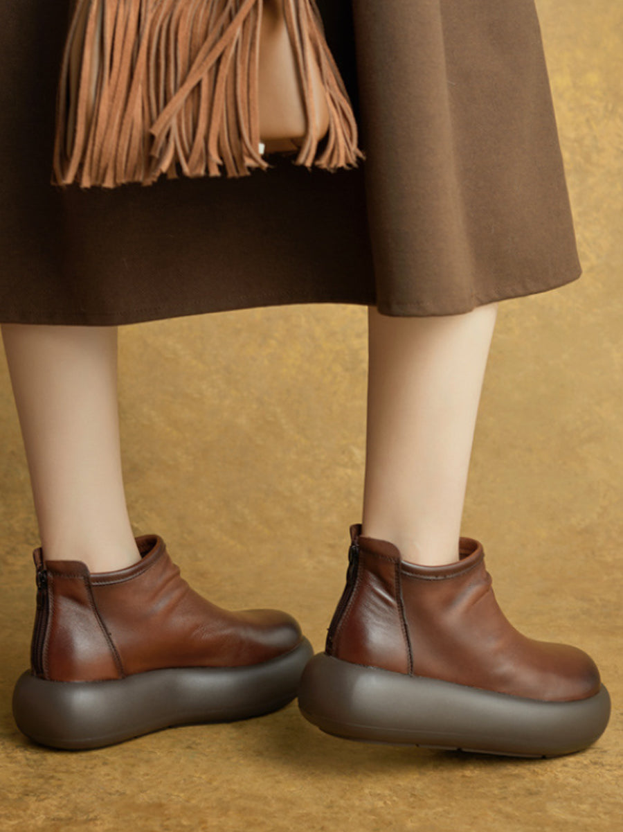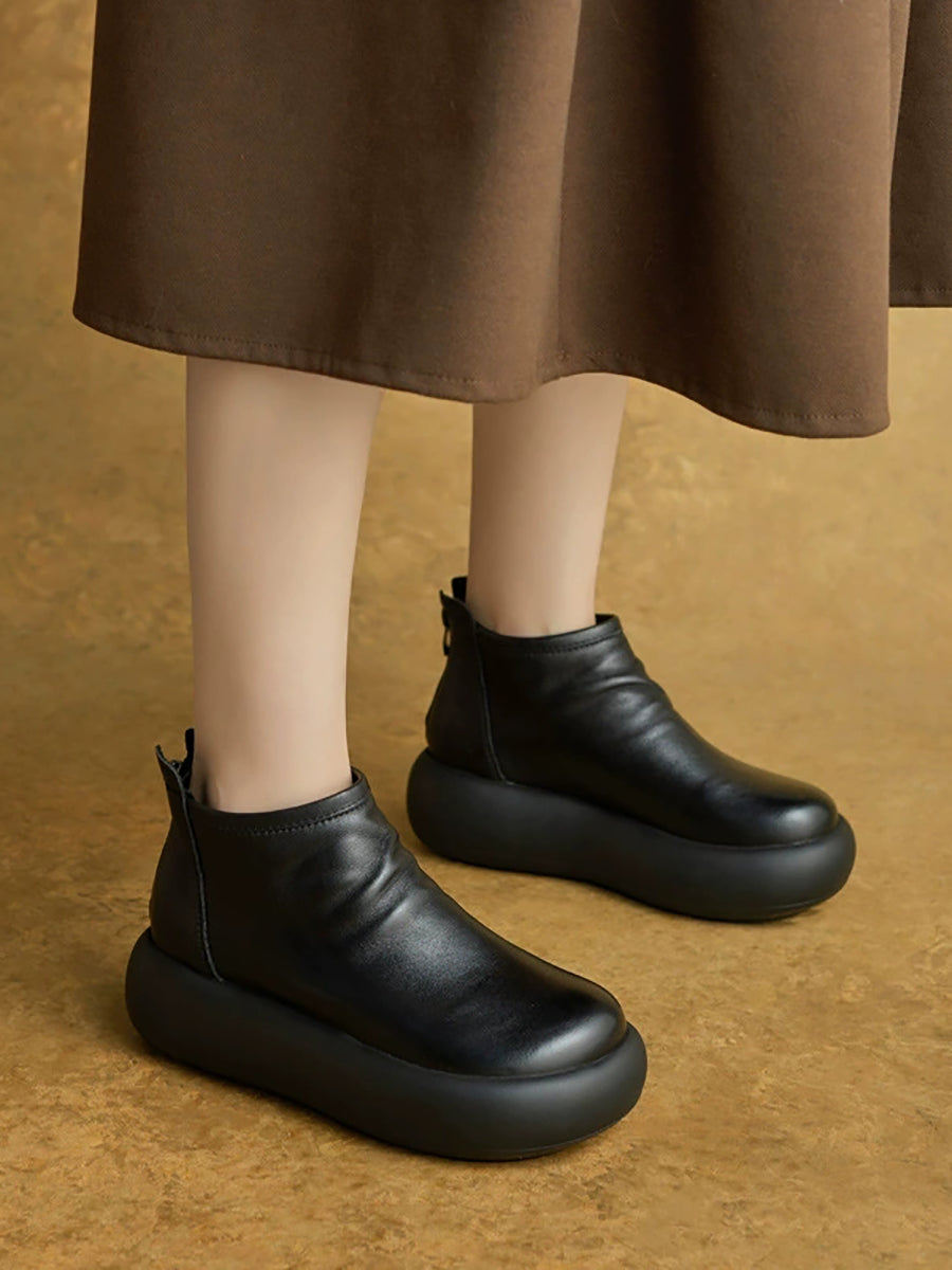 Botas femininas casuais de inverno em couro de cor pura com plataforma
