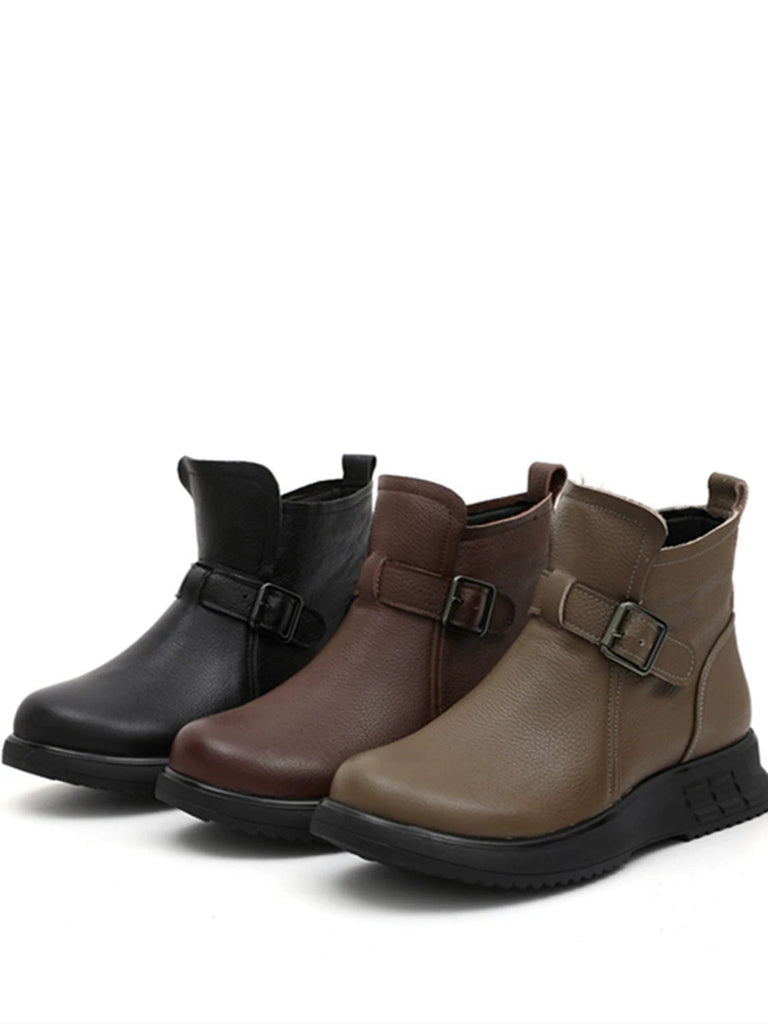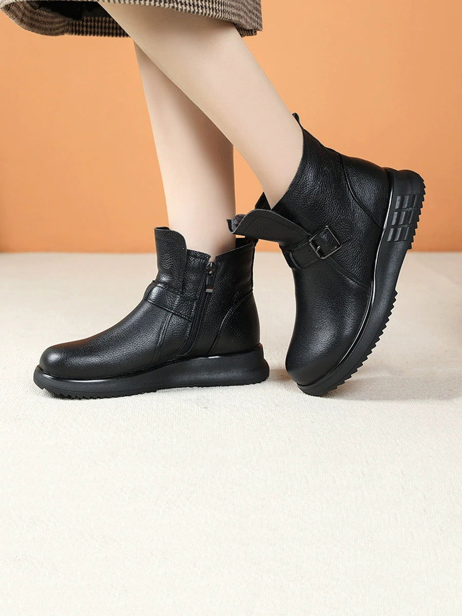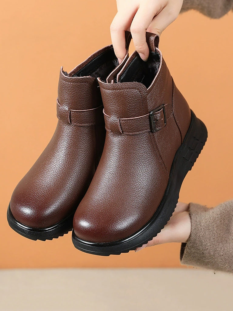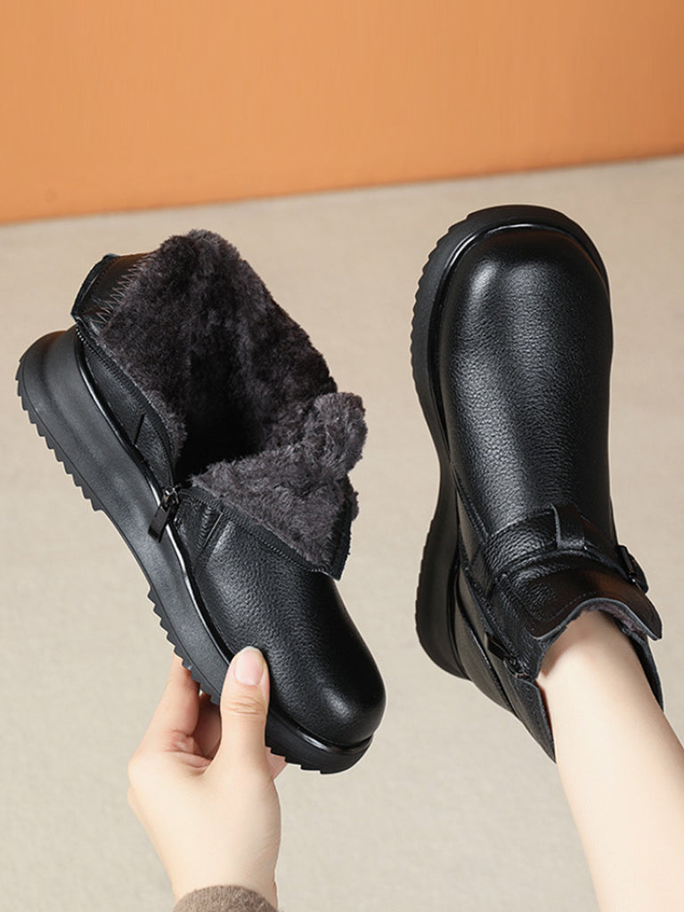 Botas Martin femininas de inverno em couro legítimo com forro de lã