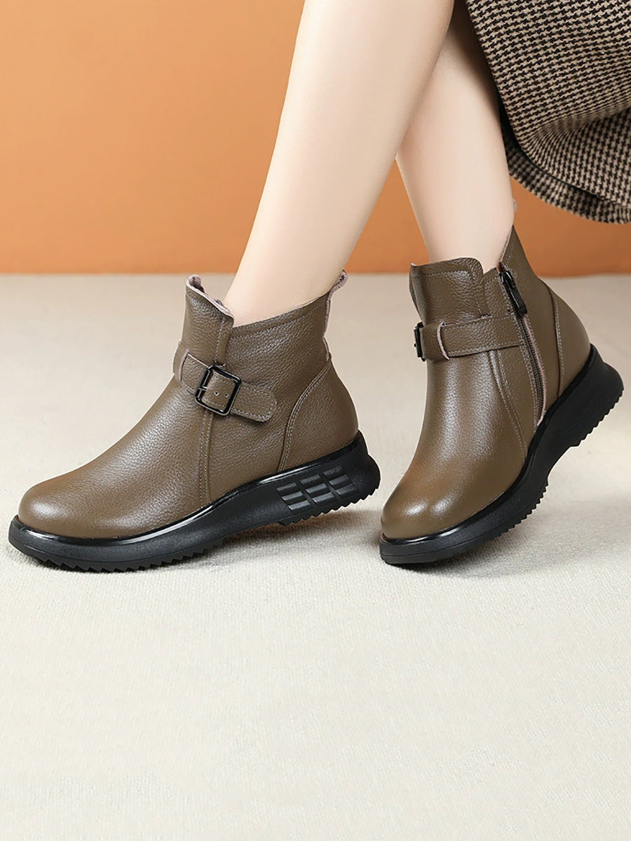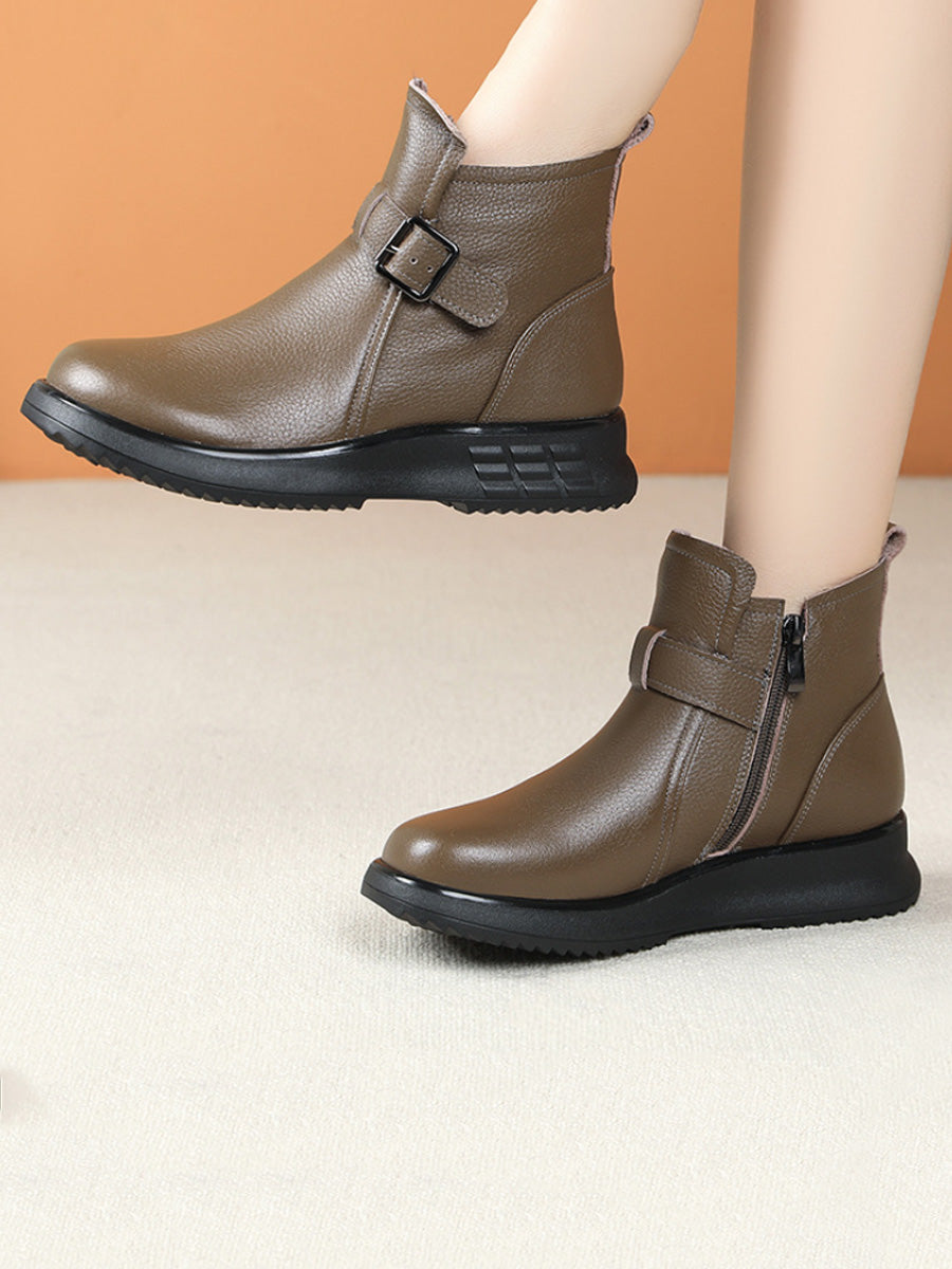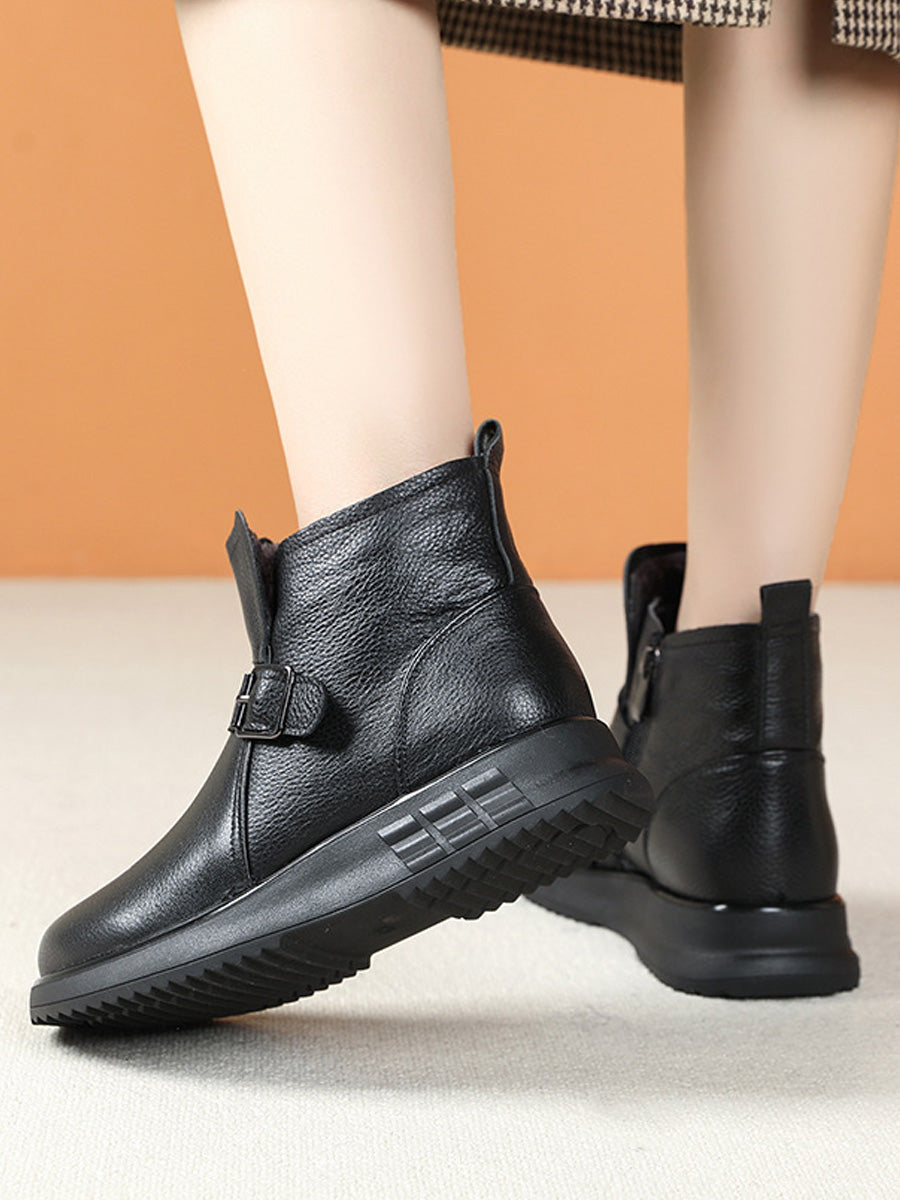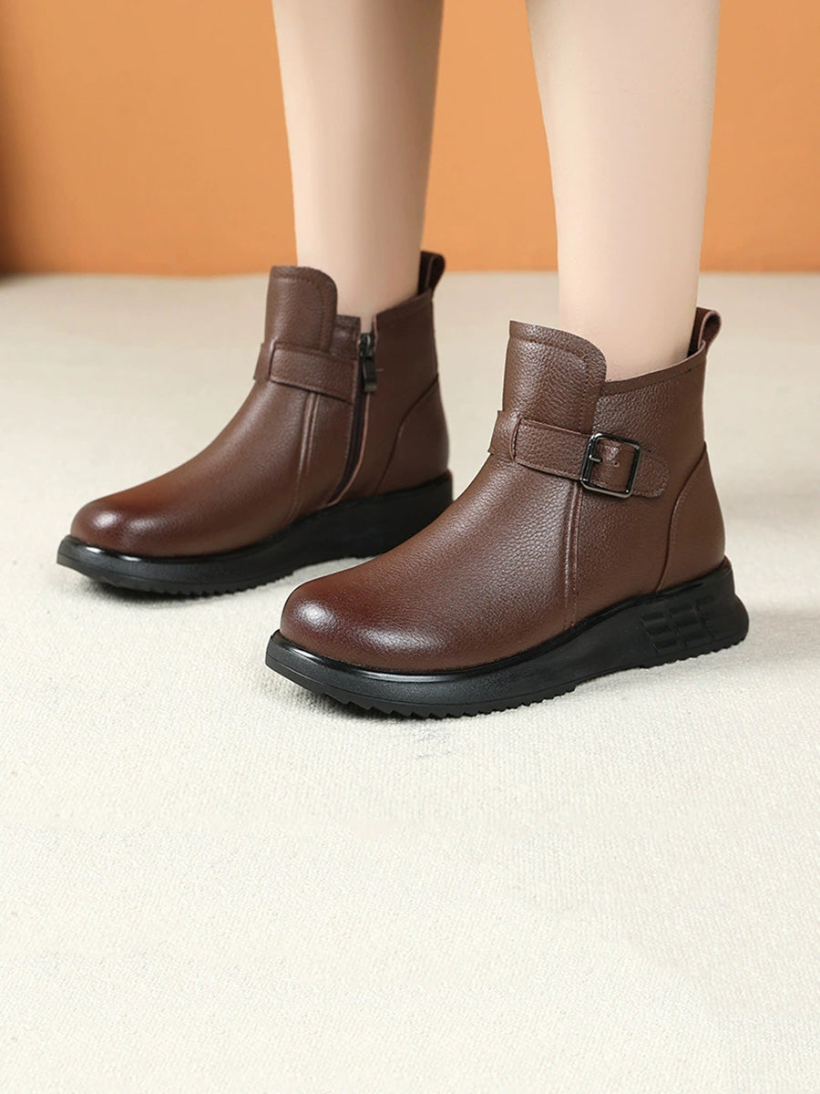 Botas Martin femininas de inverno em couro legítimo com forro de lã
