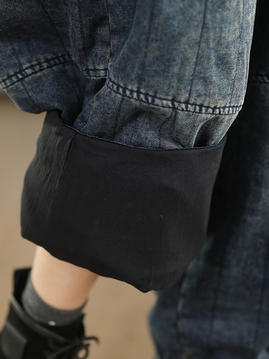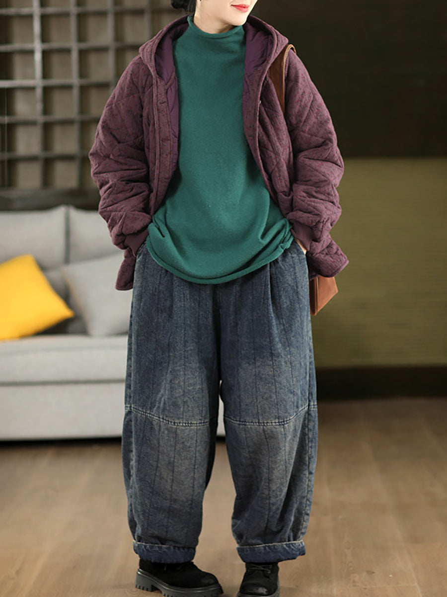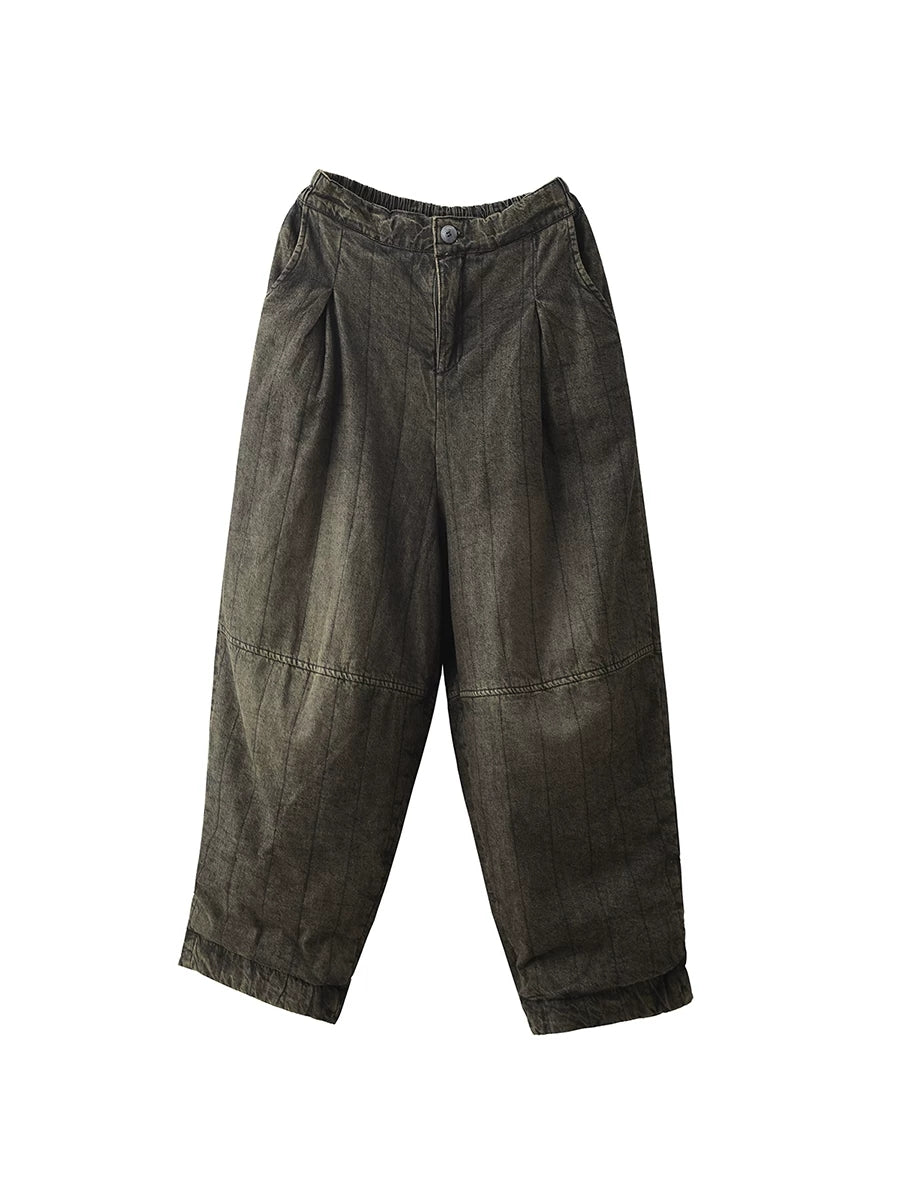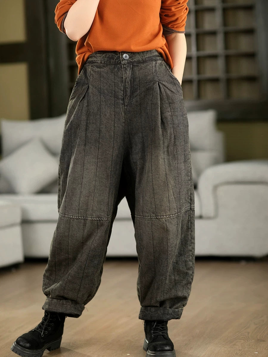 Calça feminina de inverno retrô em jeans lavado com bojo