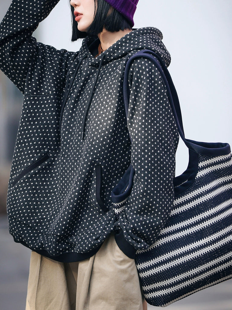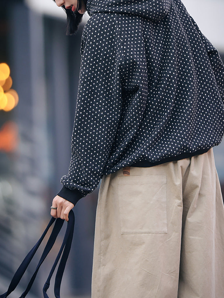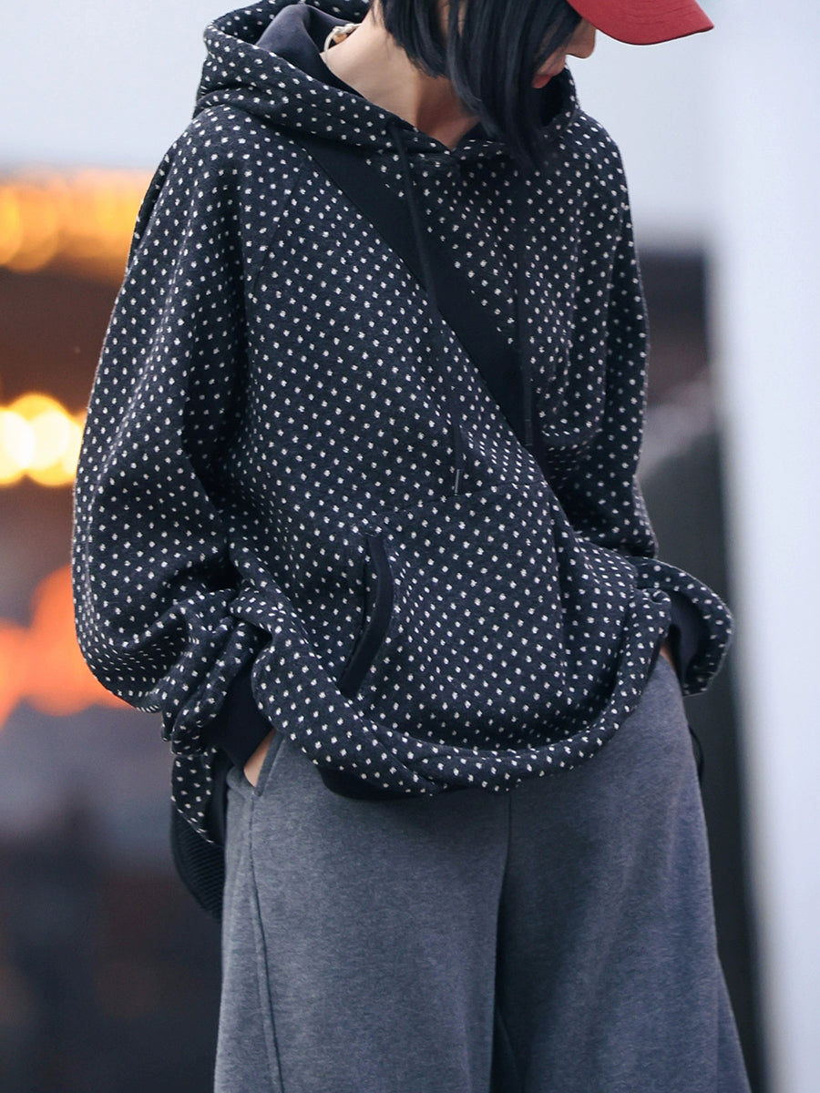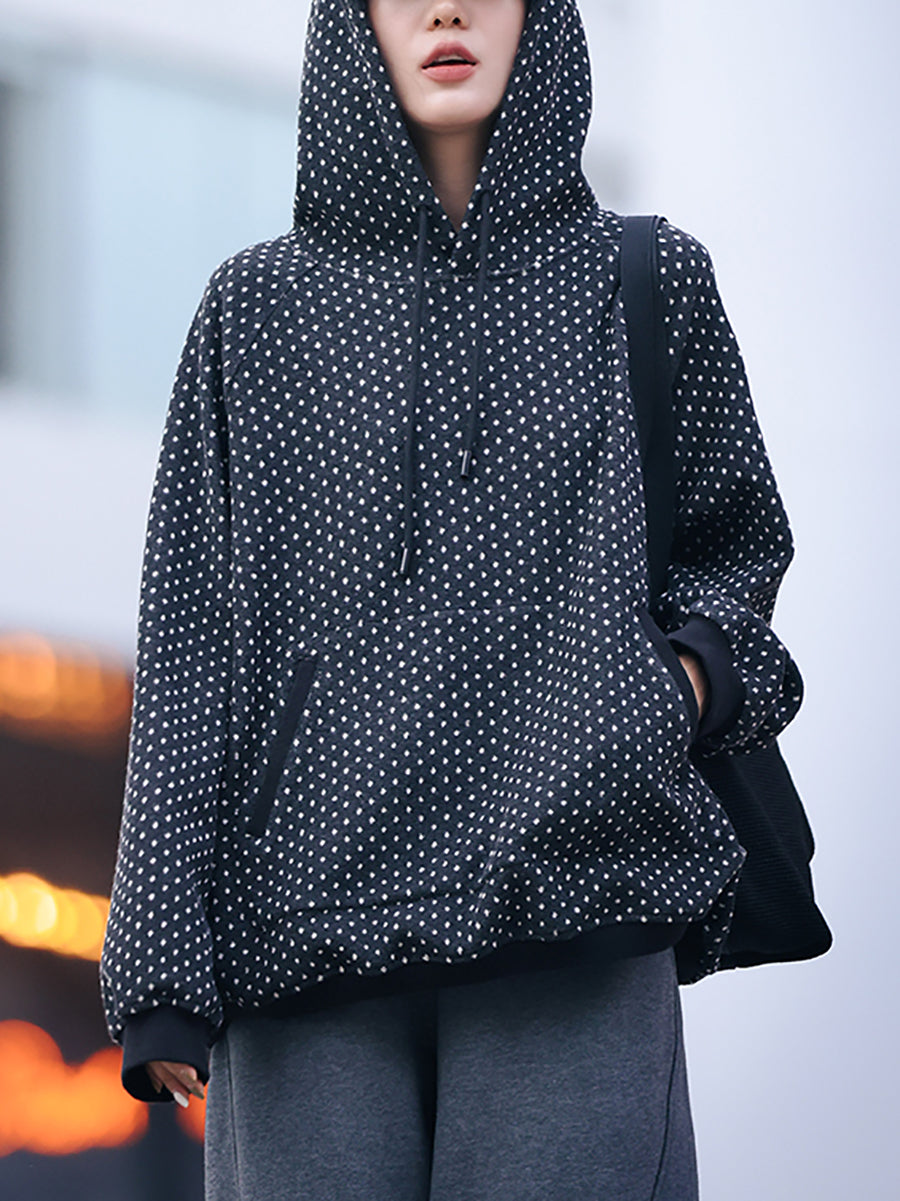 Moletom feminino de inverno com estampa vintage de bolinhas.