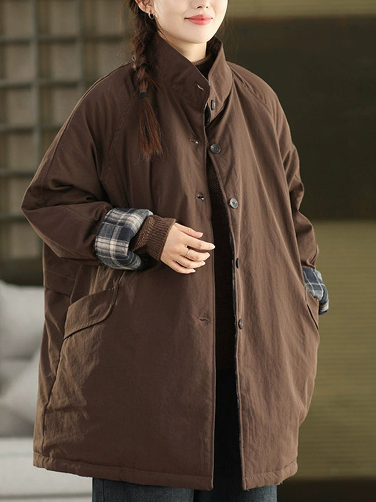 Casaco feminino de inverno com acolchoamento duplo e cor pura