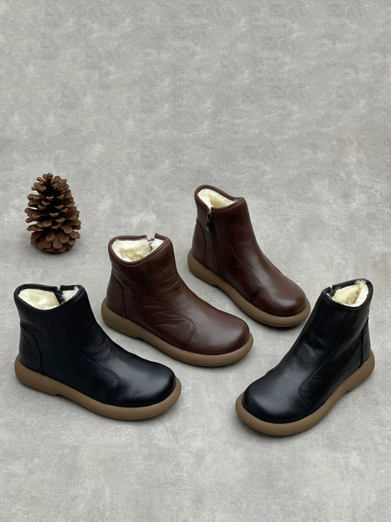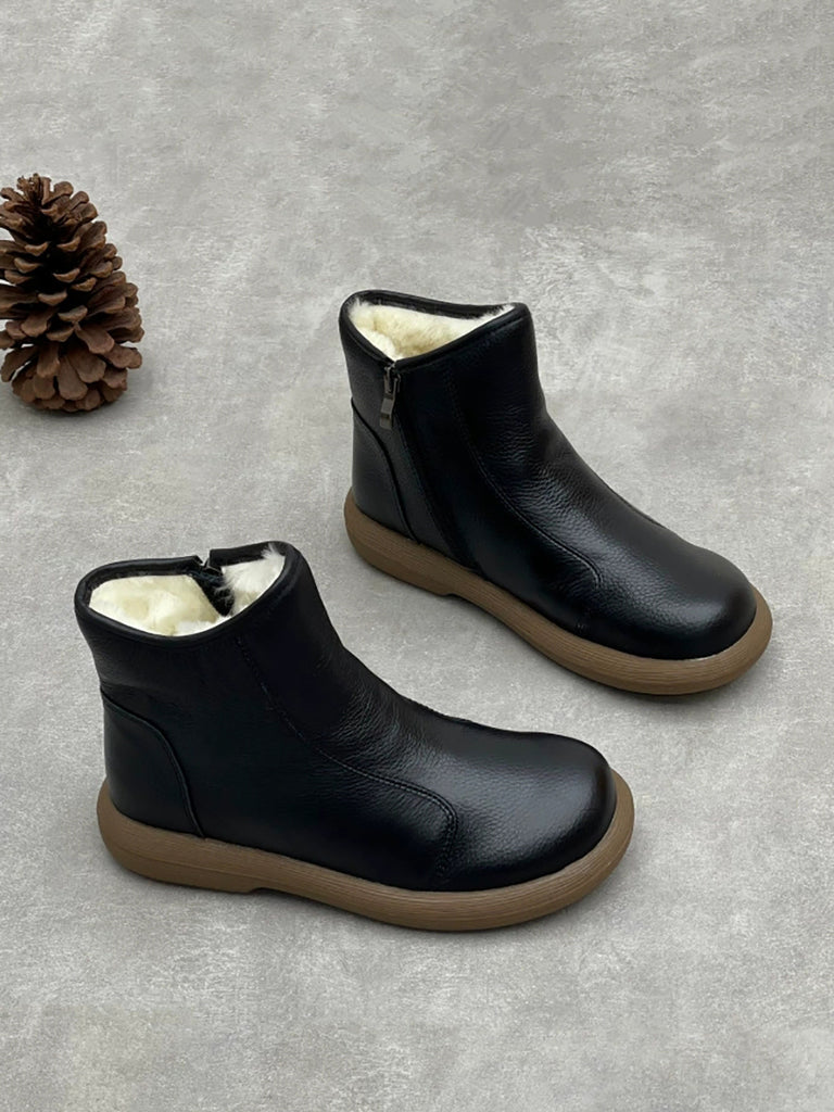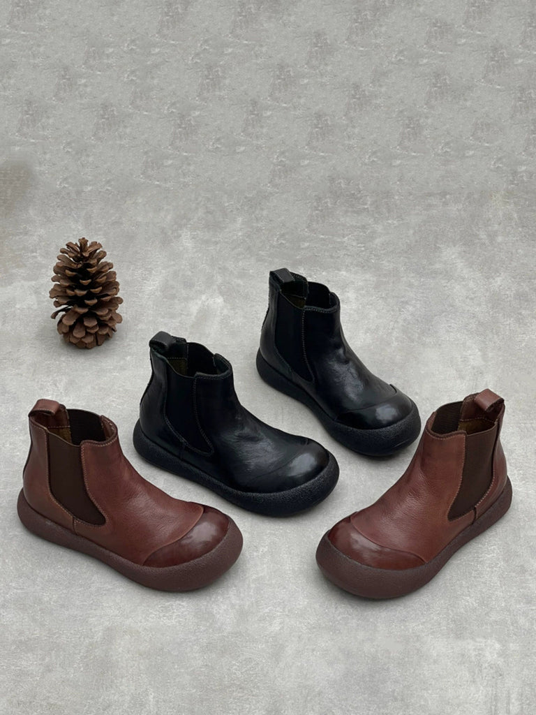 Botas femininas de inverno em couro legítimo com emendas e cano baixo