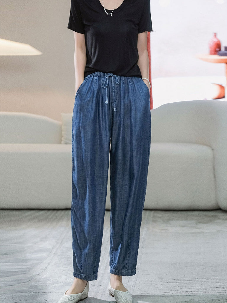 Calças harém jeans femininas casuais de verão em cores puras