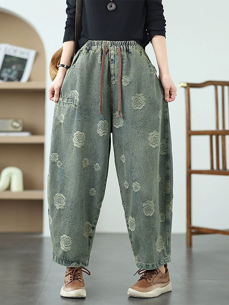 Calças Harem Jeans Rosa de Verão Artsy para Mulheres