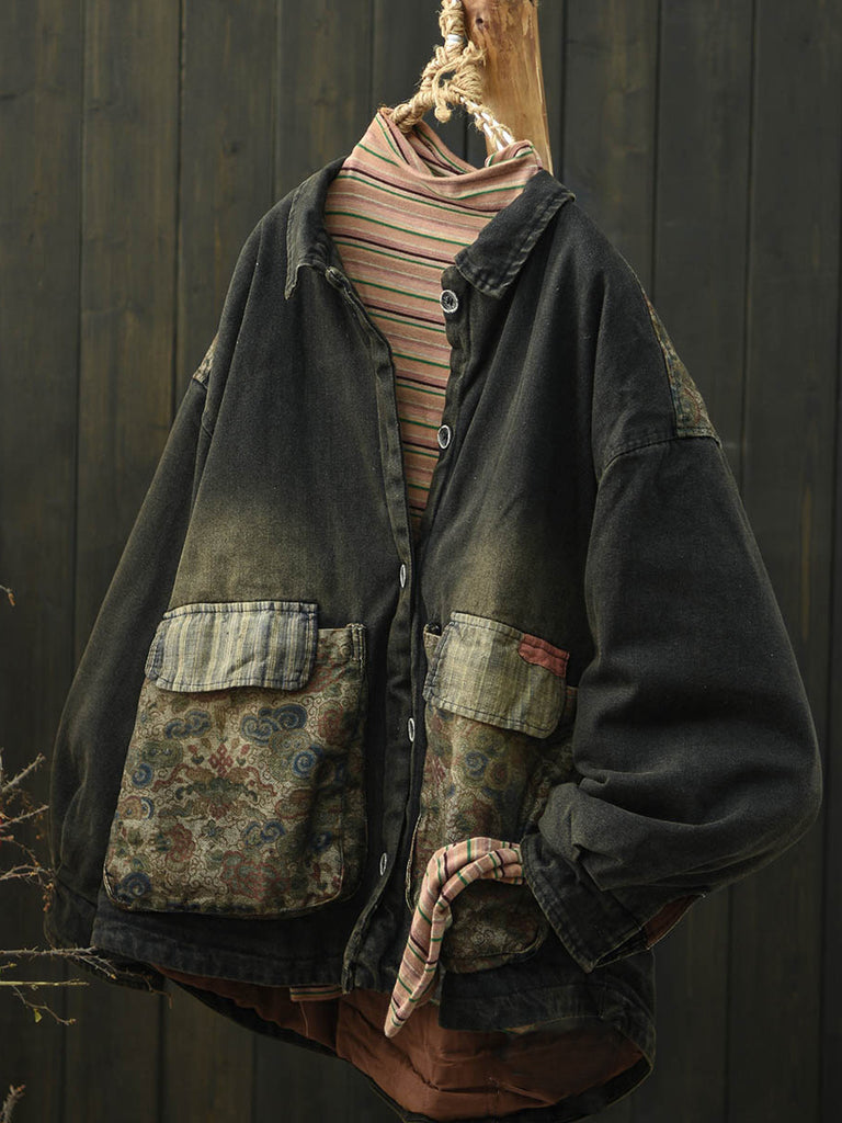 Women Vintage Autumn Turn-down Collar Denim Shirt Coat